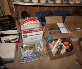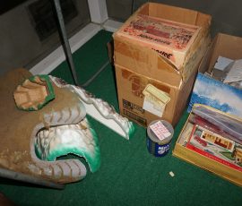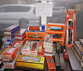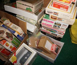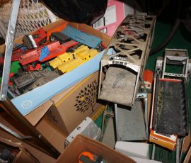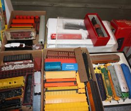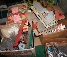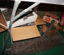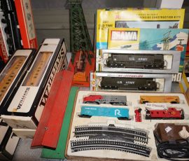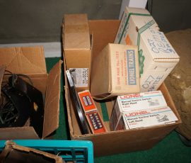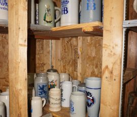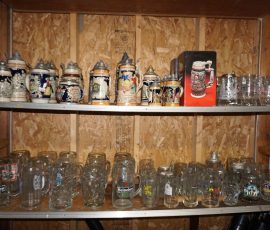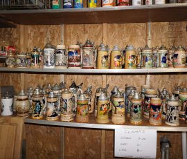 100’s of German Beer Steins, ceramic, glass & Some Shultz & Dooley, HUGE assortment of HO & O Gauge trains, transformers, accessories, Plasticville and much more!! Some yard & garden, Ladies 1970’s Schwinn bicycle, ladders, too much to list!!