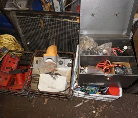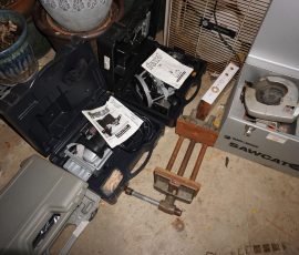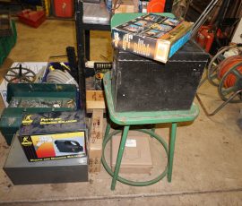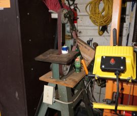 Loads of Automotive & Woodworking tools, machinery & more including, Craftsman 30-230 Dual Range Welder, Automotive Metal cutter machine, 24” Bench Metal Brake Box/Pan, Central Machinery T5980 Portable Lathe/Mill/Drill 3 in 1, Glow Warm FA-5 ventless wall heater, Sun Glow Garage Heater, Grizzly G4000 Benchtop metal lathe, other smaller benchtop lathes, Craftsman Bandsaw, Reliant DD50 5 speed drill press, other drill press, table saw, Sanborn Black Max large industrial compressor, Jet Planer, Delta Boss Spindle sander, tool bath, Craftsman scroll saw, miter saw, Craftsman shredder/chipper, mower, steel scaffolding, shelving, many tool chests including Snap-On, Vulcan, Craftsman & more, LOADS of hand & power tools, automotive tools & more!!