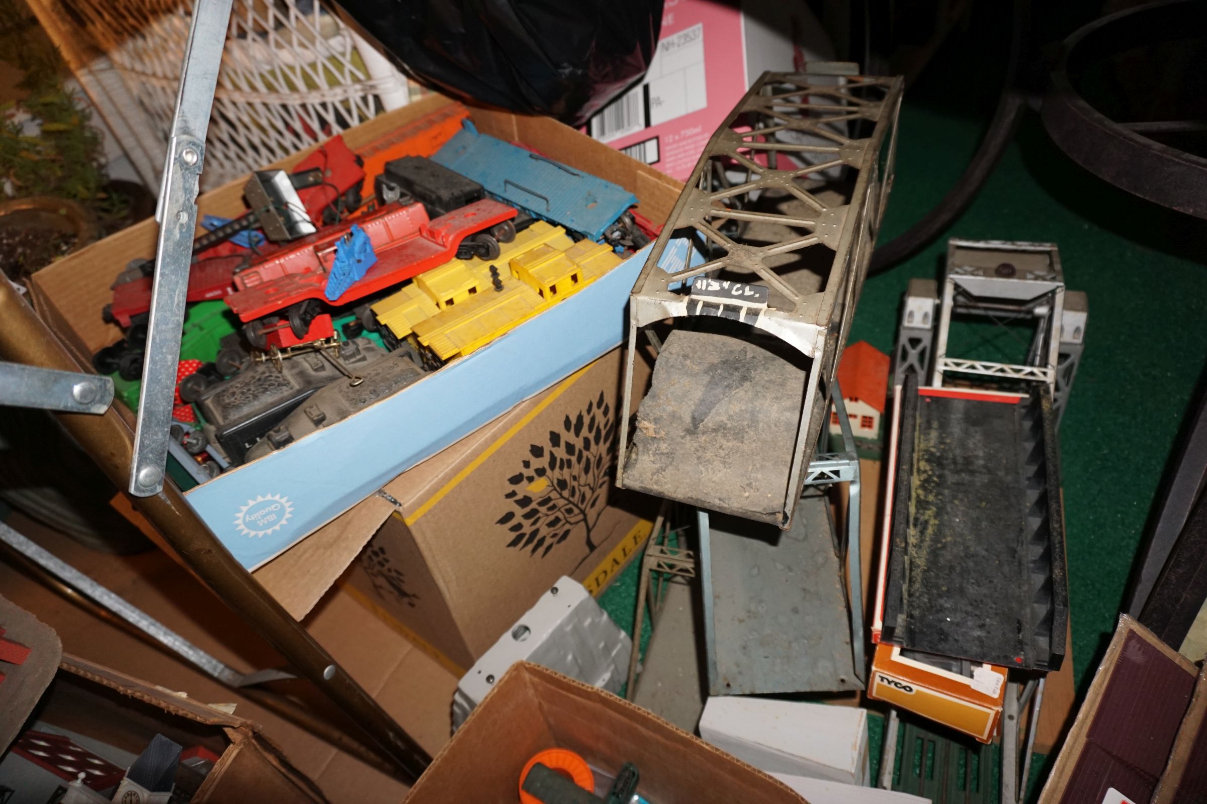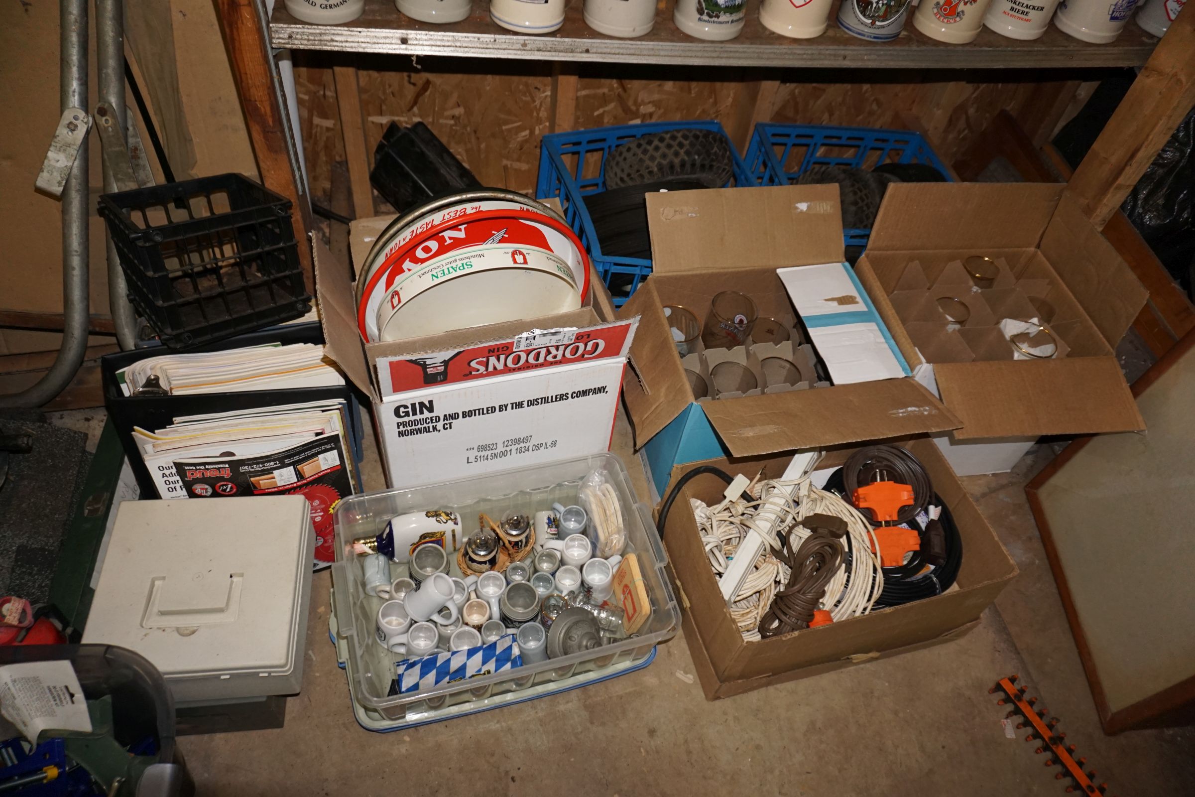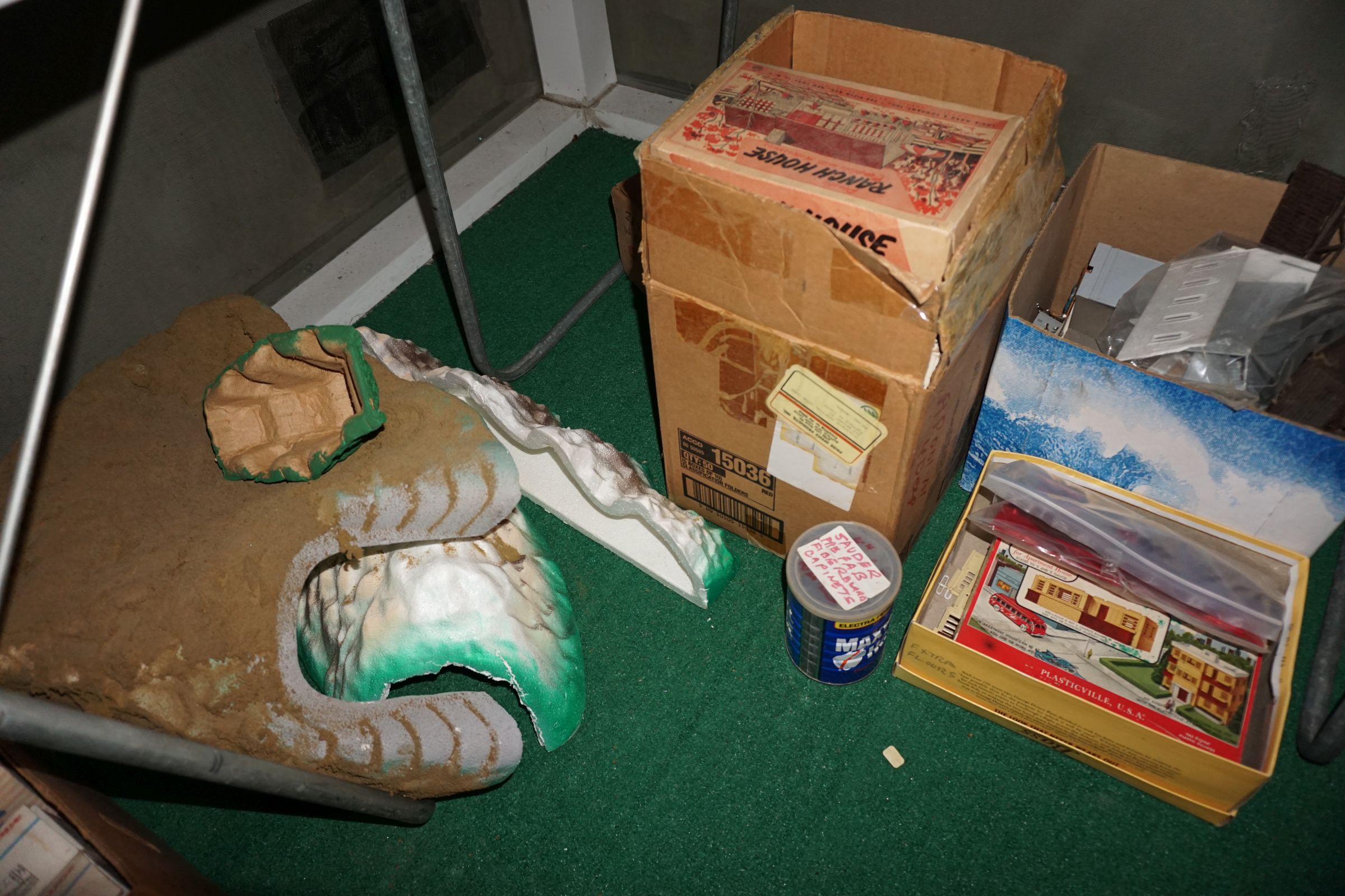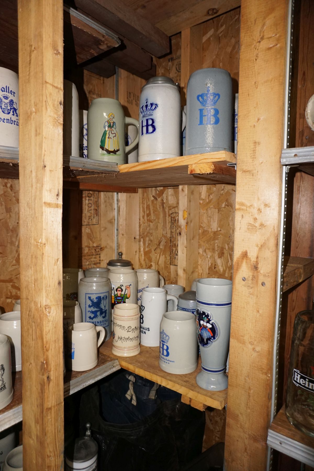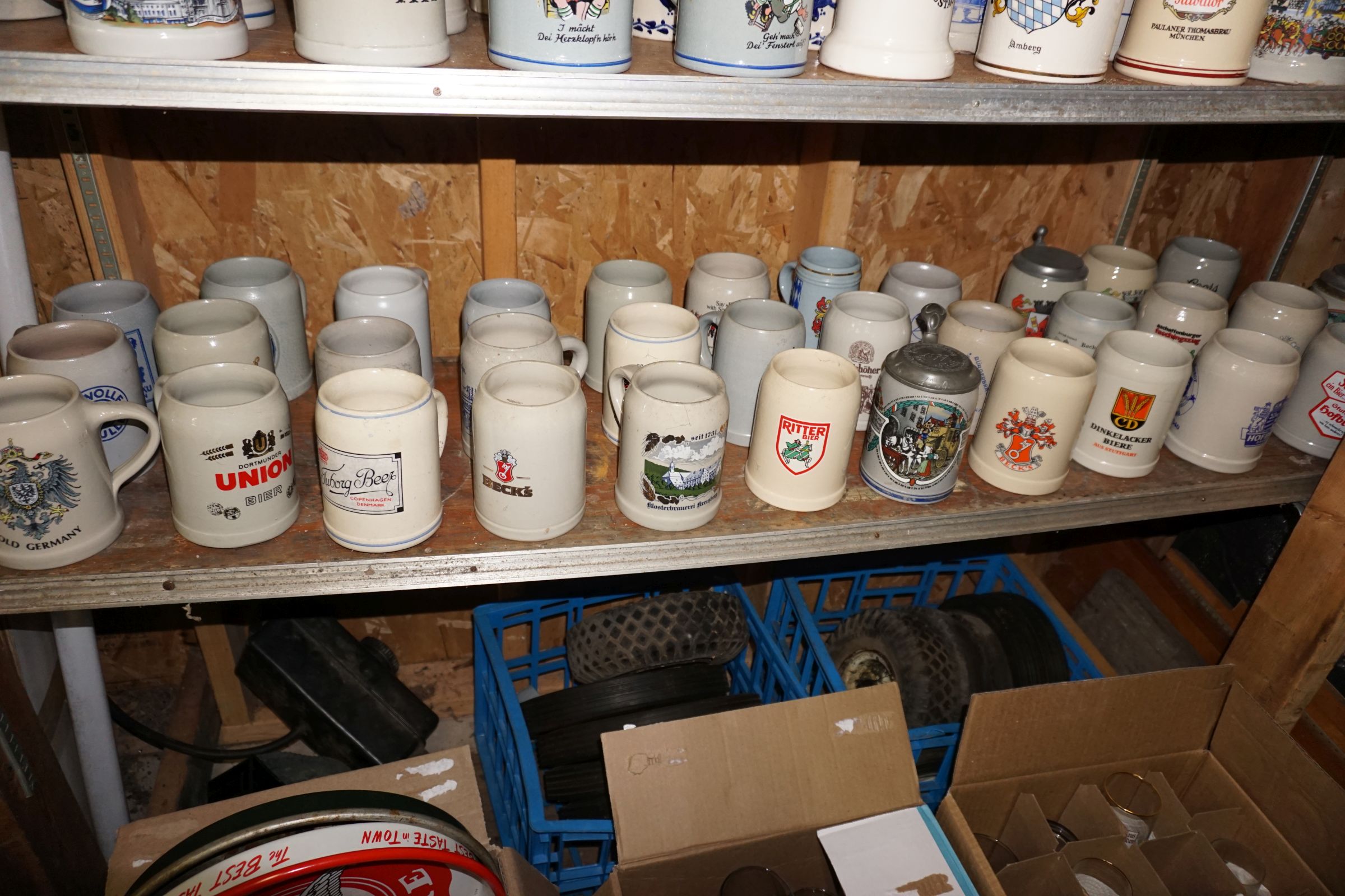 100’s of German Beer Steins, ceramic, glass & Some Shultz & Dooley, HUGE assortment of HO & O Gauge trains, transformers, accessories, Plasticville and much more!! Some yard & garden, Ladies 1970’s Schwinn bicycle, ladders, too much to list!!