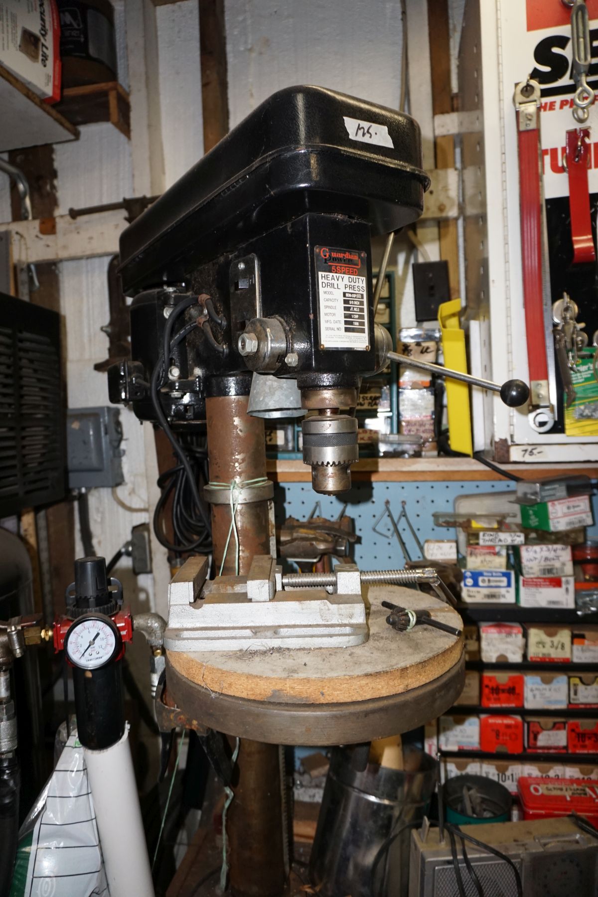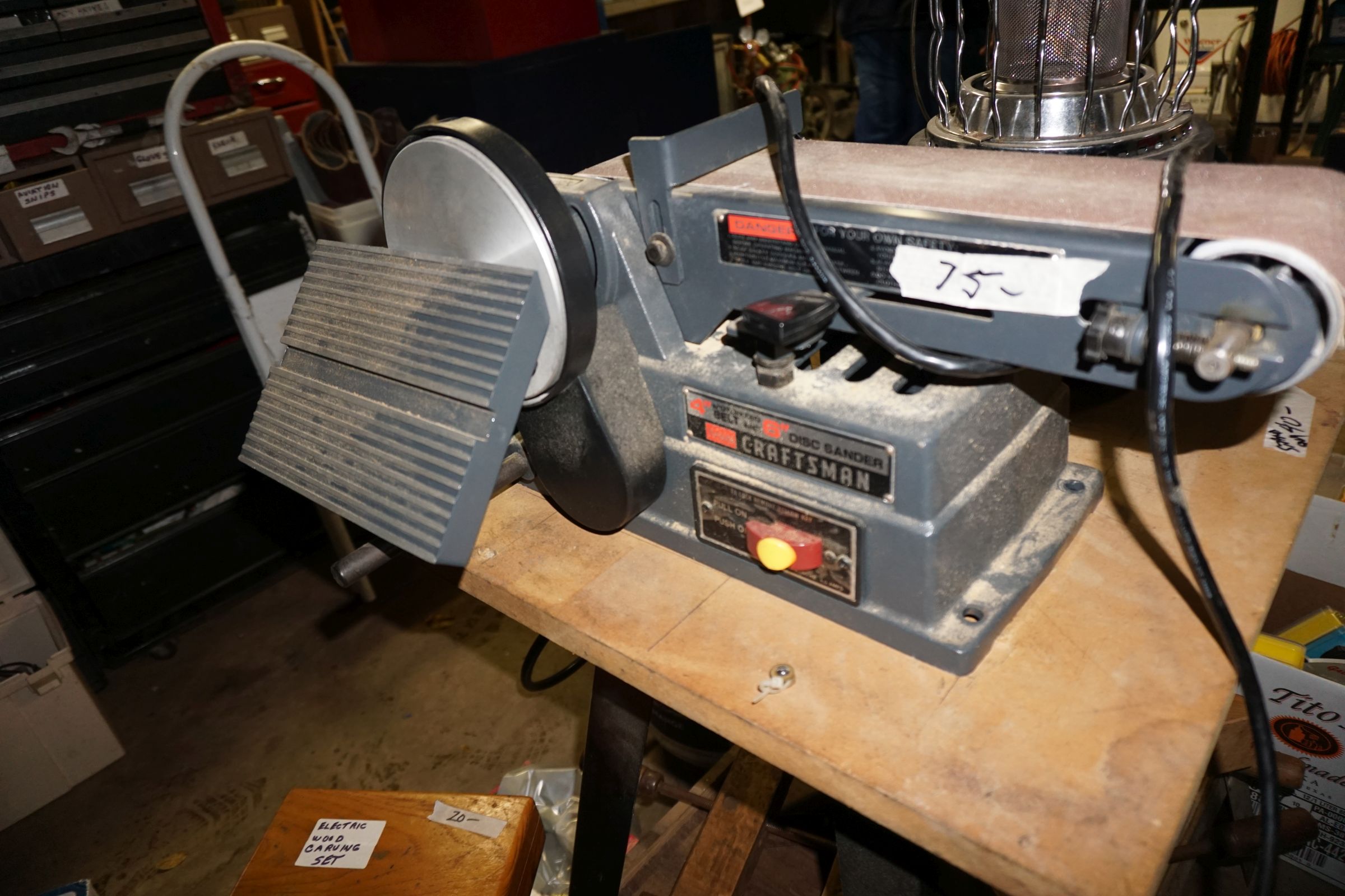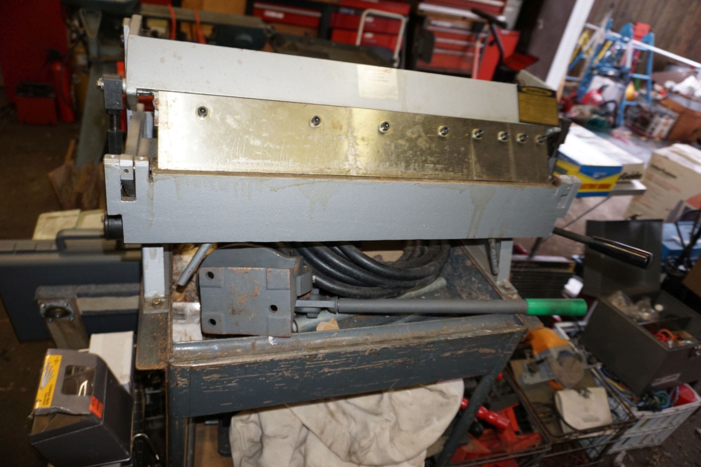 Loads of Automotive & Woodworking tools, machinery & more including, Craftsman 30-230 Dual Range Welder, Automotive Metal cutter machine, 24” Bench Metal Brake Box/Pan, Central Machinery T5980 Portable Lathe/Mill/Drill 3 in 1, Glow Warm FA-5 ventless wall heater, Sun Glow Garage Heater, Grizzly G4000 Benchtop metal lathe, other smaller benchtop lathes, Craftsman Bandsaw, Reliant DD50 5 speed drill press, other drill press, table saw, Sanborn Black Max large industrial compressor, Jet Planer, Delta Boss Spindle sander, tool bath, Craftsman scroll saw, miter saw, Craftsman shredder/chipper, mower, steel scaffolding, shelving, many tool chests including Snap-On, Vulcan, Craftsman & more, LOADS of hand & power tools, automotive tools & more!!