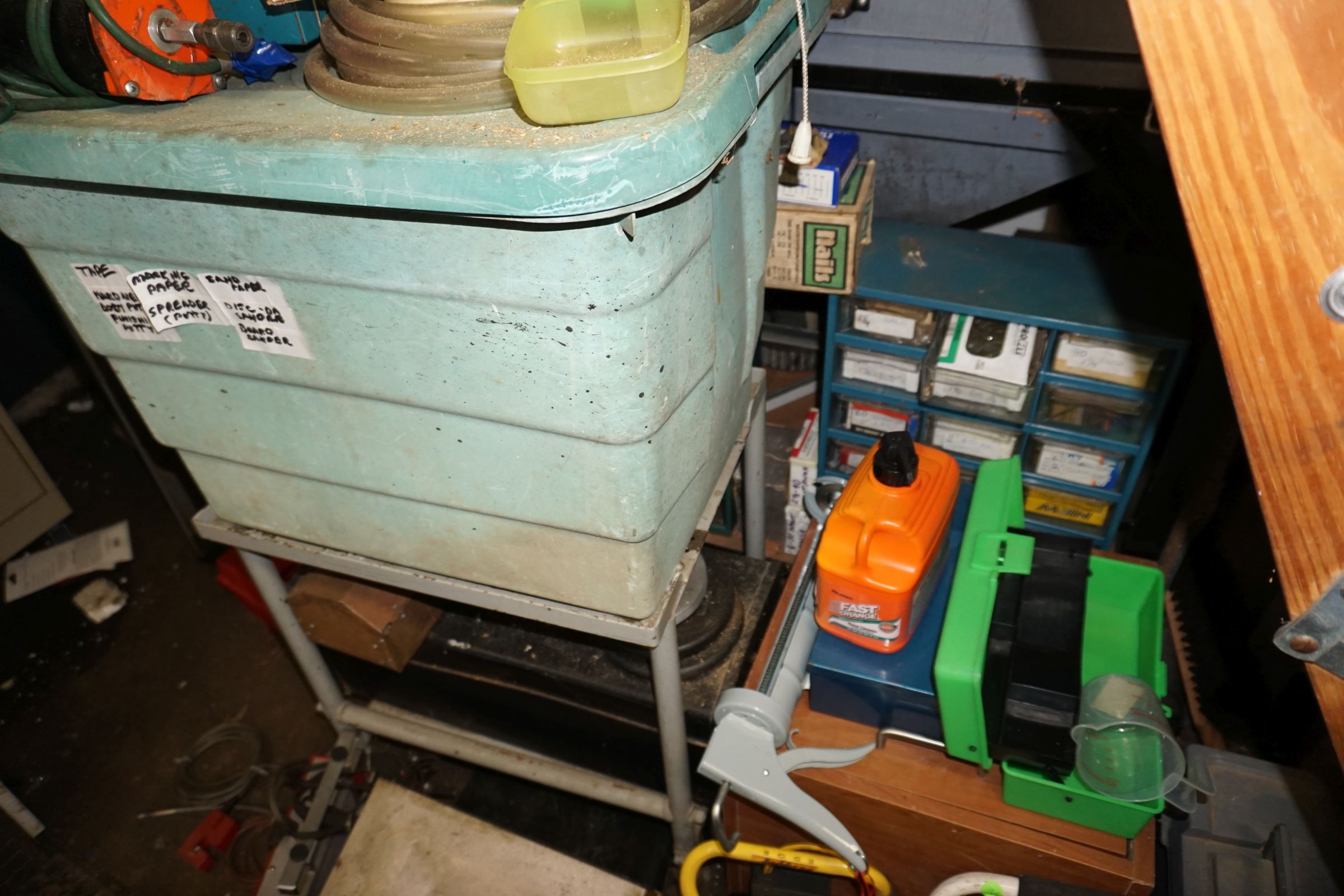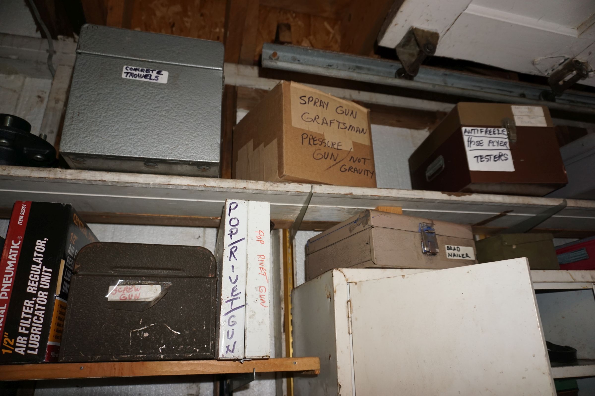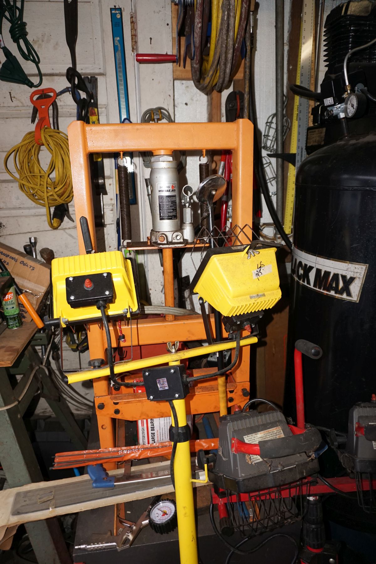 Loads of Automotive & Woodworking tools, machinery & more including, Craftsman 30-230 Dual Range Welder, Automotive Metal cutter machine, 24” Bench Metal Brake Box/Pan, Central Machinery T5980 Portable Lathe/Mill/Drill 3 in 1, Glow Warm FA-5 ventless wall heater, Sun Glow Garage Heater, Grizzly G4000 Benchtop metal lathe, other smaller benchtop lathes, Craftsman Bandsaw, Reliant DD50 5 speed drill press, other drill press, table saw, Sanborn Black Max large industrial compressor, Jet Planer, Delta Boss Spindle sander, tool bath, Craftsman scroll saw, miter saw, Craftsman shredder/chipper, mower, steel scaffolding, shelving, many tool chests including Snap-On, Vulcan, Craftsman & more, LOADS of hand & power tools, automotive tools & more!!