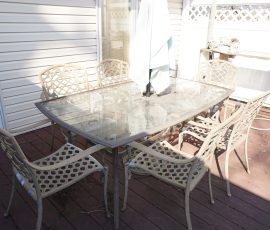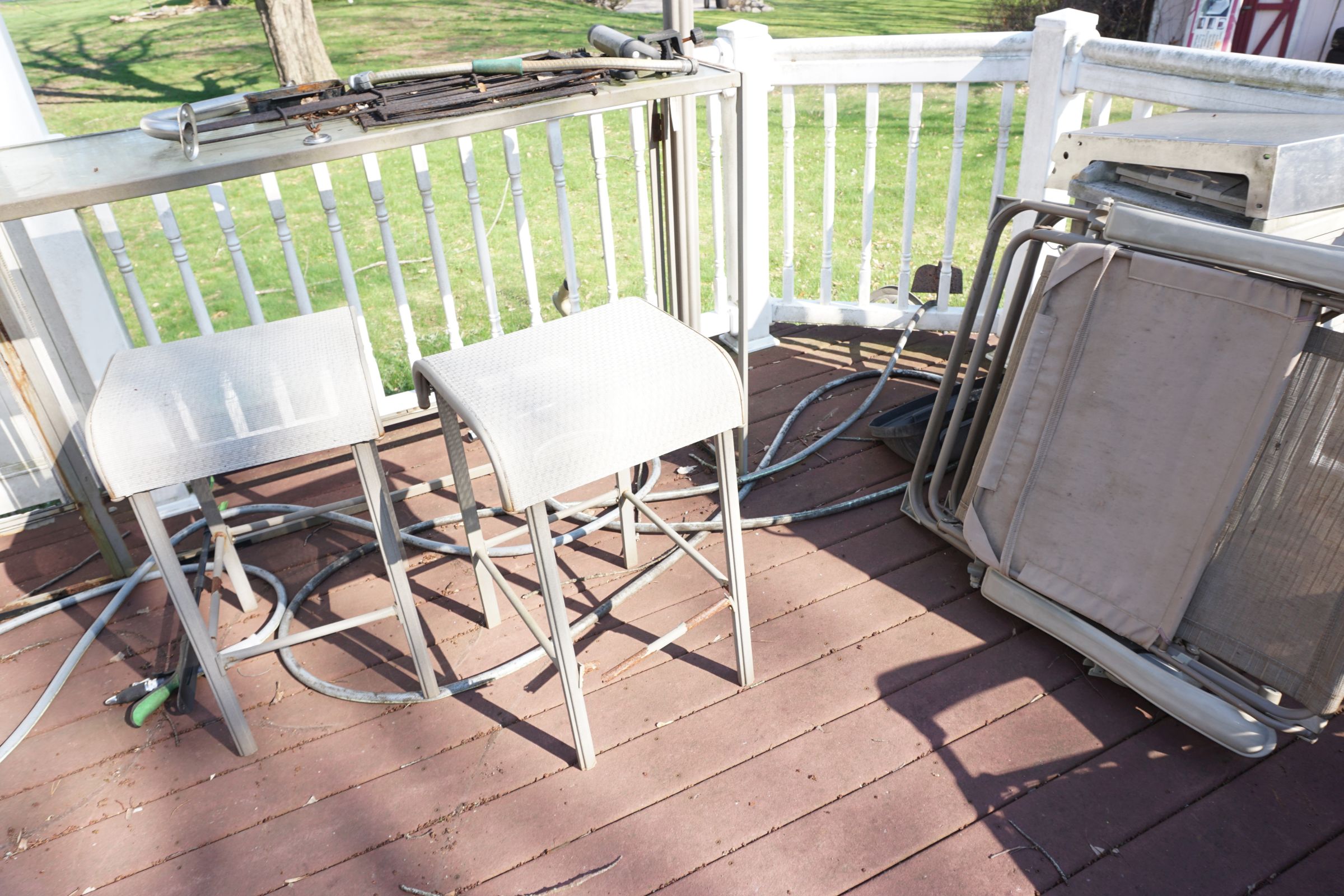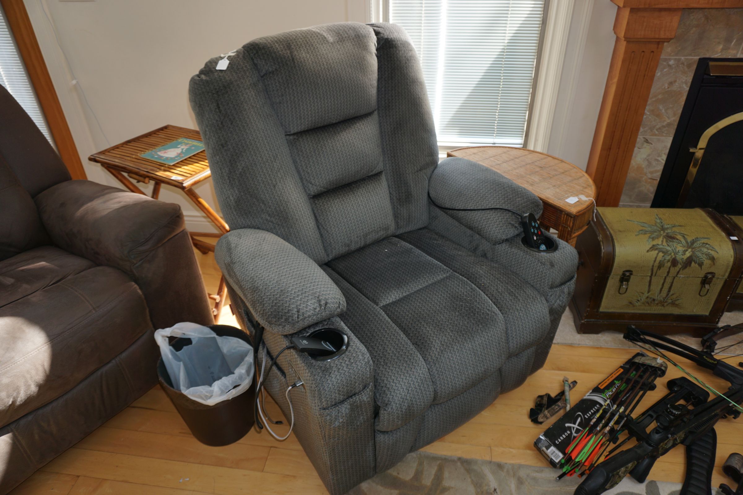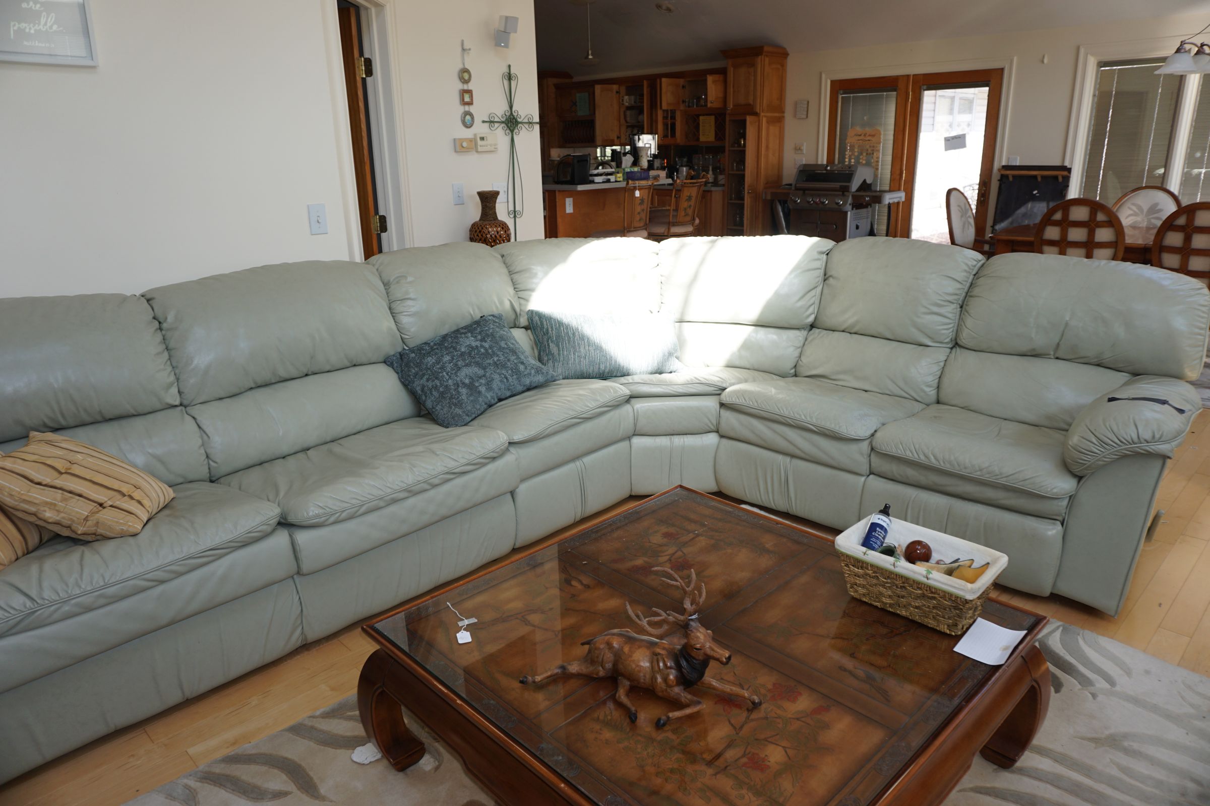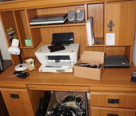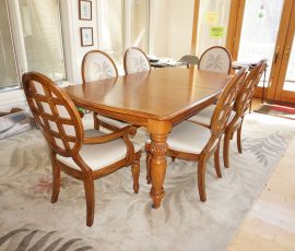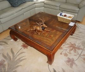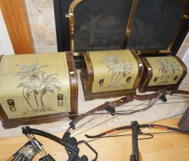 Tommy Bahama dining room table, 2 leaves & 6 chairs, Suede recliner, lift chair, 65” TV, entertainment stand, many occasional tables & chairs, lamps, set of 4 Hillsdale Furniture West Palm Burnished Brown swivel bar stools, set of 5 rush seat bar stools, sectional, area rugs, kitchenware, silver plate, Monument stainless grill, leather recliner, upholstered chair/ottoman, upholstered furniture, cherry end tables, curio cabinet, day/trundle bed, desk, office equip, lap tops, printer, file cab’s, games, dressers, vanity, Mission style king bed, artwork, full bed, ladies clothing/shoes, fishing, gun cases, cross bows, tree stand, holiday décor, trunks, antique singer sewing machine, electric guitar, banjo, art deco dresser, cedar chest, vintage toys & toy chest, electronics, Stack On gun safe, hand & power tools, compressors, yard & garden, Craftsman GT3000 lawn tractor, John Deere S140 48” cut lawn tractor (like new 34 hours), single axle landscape flat trailer, tires, 10’ x 20’ Hercules canopy, 10’ x 10’ pop up tent, patio furniture, 2011 Ford Explorer Limited 157k miles.