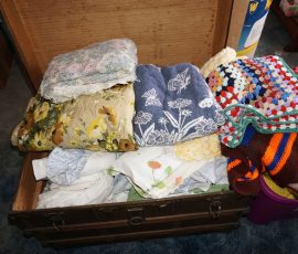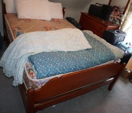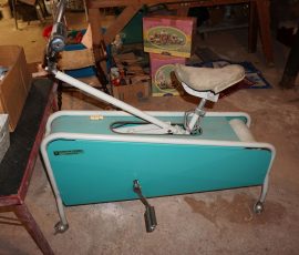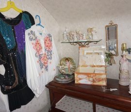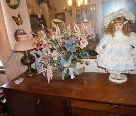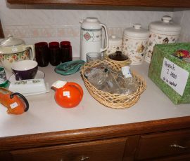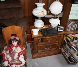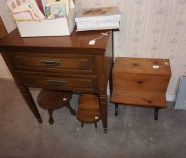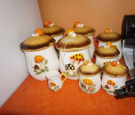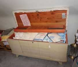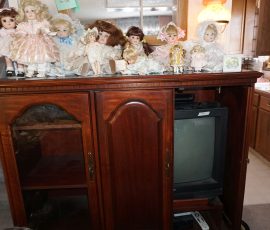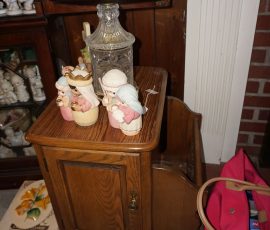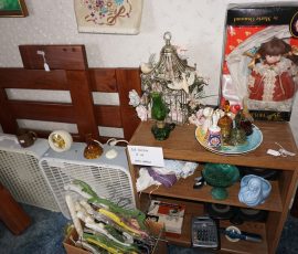 Stanley 7 piece Mid Century Modern Dining Room Set, Tile top dinette set, TV cabinet, 100+ Precious Moments figurines, Fenton Lamps, Large Doll Collection, Sewing, floral sofa, vinyl records, CD’s, DVD’s, Rock Maple bed & dresser, cedar chests, ladies & youth clothing including many vintage, 1978 Sears Merry Mushroom Canister set, kitchenware, Jadeite mixing bowl set, vintage luggage, holiday décor including vintage, some tools, Ladies vintage Schwinn Suburban bike, Ross Bike, vintage exercise bike, artwork, costume jewelry, loads of miscellaneous!!