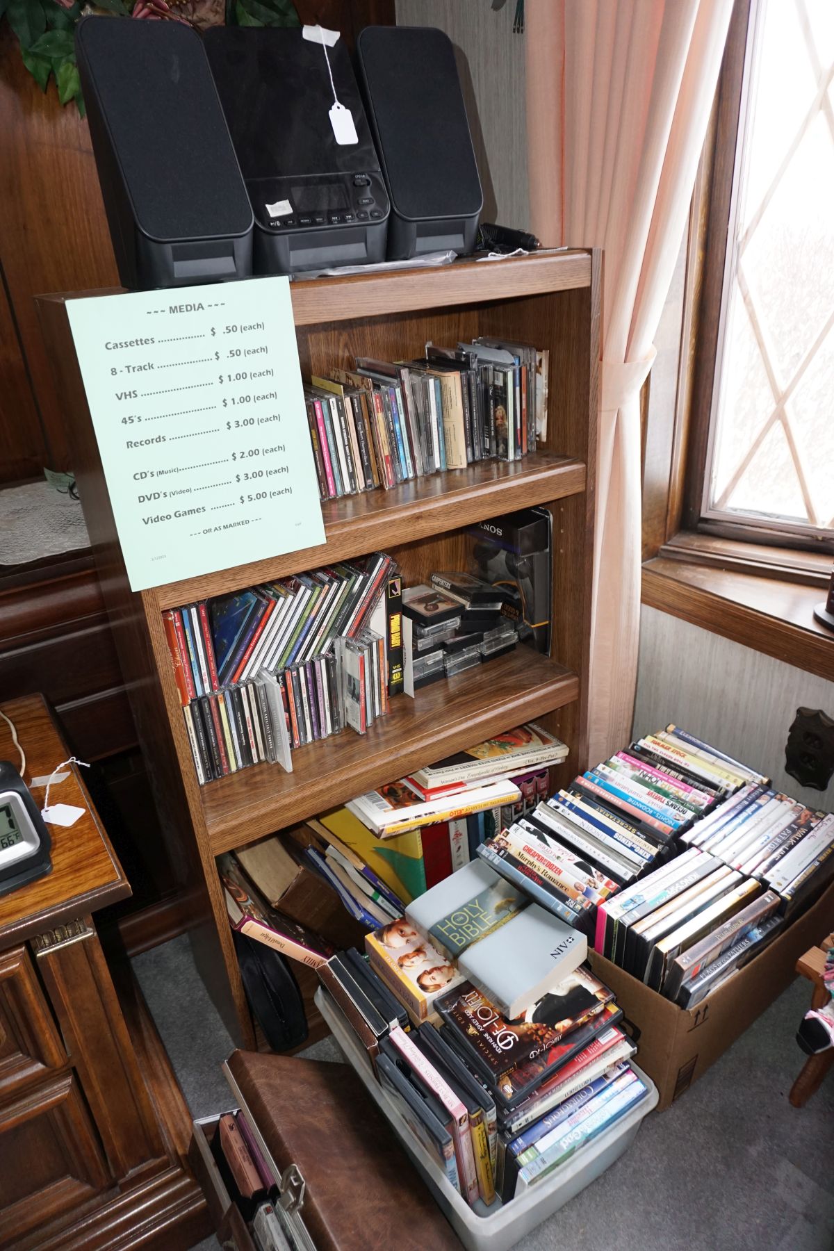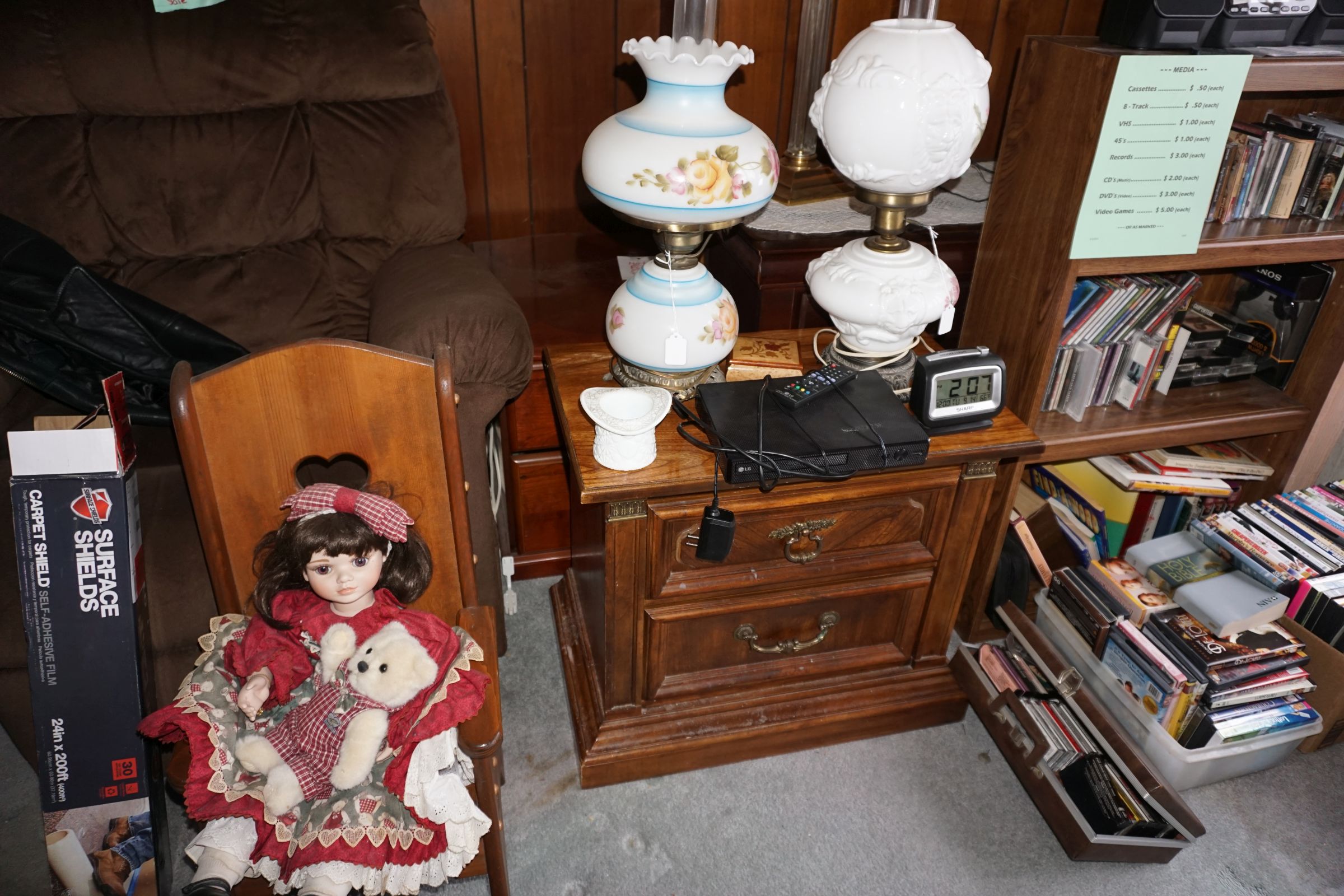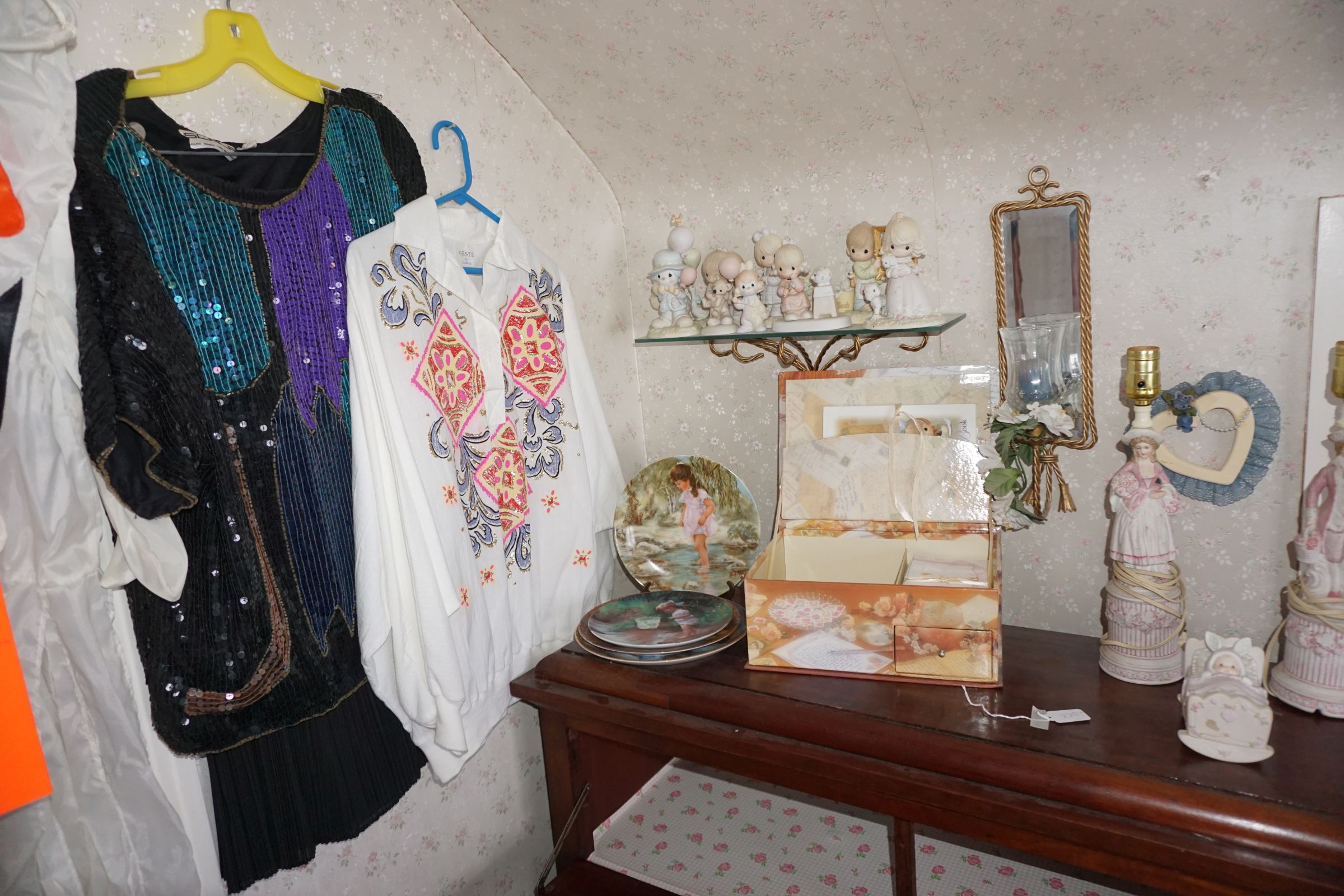 Stanley 7 piece Mid Century Modern Dining Room Set, Tile top dinette set, TV cabinet, 100+ Precious Moments figurines, Fenton Lamps, Large Doll Collection, Sewing, floral sofa, vinyl records, CD’s, DVD’s, Rock Maple bed & dresser, cedar chests, ladies & youth clothing including many vintage, 1978 Sears Merry Mushroom Canister set, kitchenware, Jadeite mixing bowl set, vintage luggage, holiday décor including vintage, some tools, Ladies vintage Schwinn Suburban bike, Ross Bike, vintage exercise bike, artwork, costume jewelry, loads of miscellaneous!!
