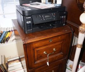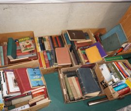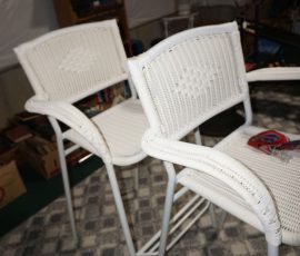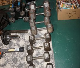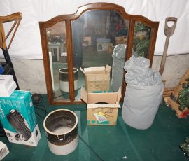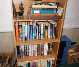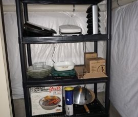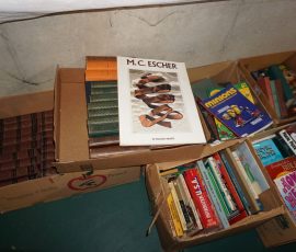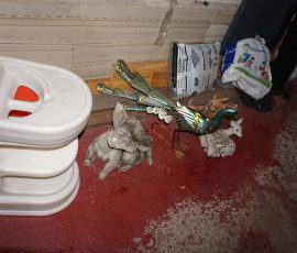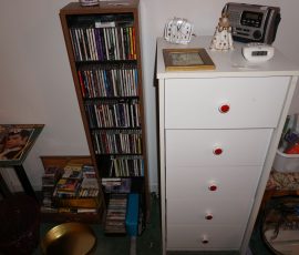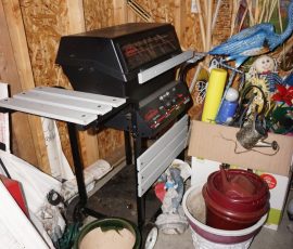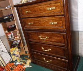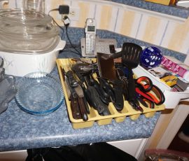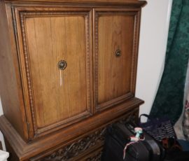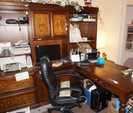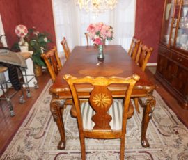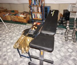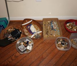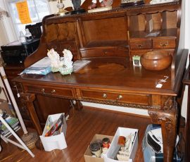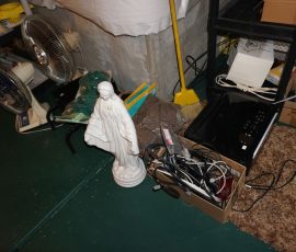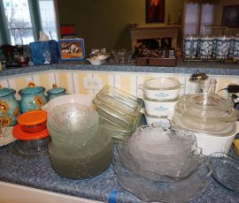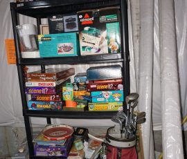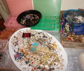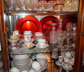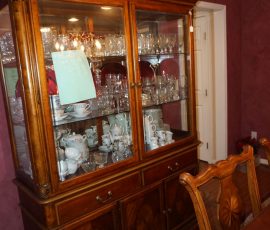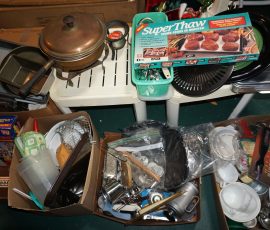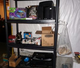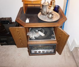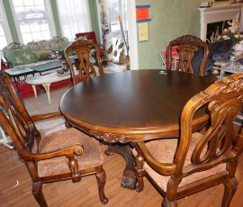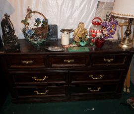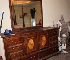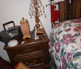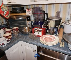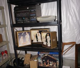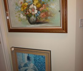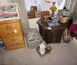 Traditional/Chippendale style Dining room set & China Cabinet, Dinette set, Retro 70’s dinette set, Queen 4 poster Bedroom set, Mediterranean QN bedroom set, entry table, many occasional tables/chairs, lamps including retro brass arch 4 light lamp, men’s & ladies clothing incl few vintage Bills, Tony Sisti original oil painting, other paintings & prints, loads of glass, china, kitchenware, Chippendale style desk, regular & lateral wood file cabinets, new Canon printer, wrought iron patio furniture, jewelry chest & jewelry desk/vanity, LOADS of costume jewelry & some sterling jewelry, books, Records, CD’s, DVD’s, VHS, vintage slide out stereo/turntable, other beds & dressers, 100’s pcs of Party Lite new-in-box, free weights, dumbbells & benches, pr outdoor tall white wicker bar stools, TV’s, electronics, NordicTrack 1900 treadmill, bicycles, sewing, holiday décor, fridge, yard & garden, loads of miscellaneous!!