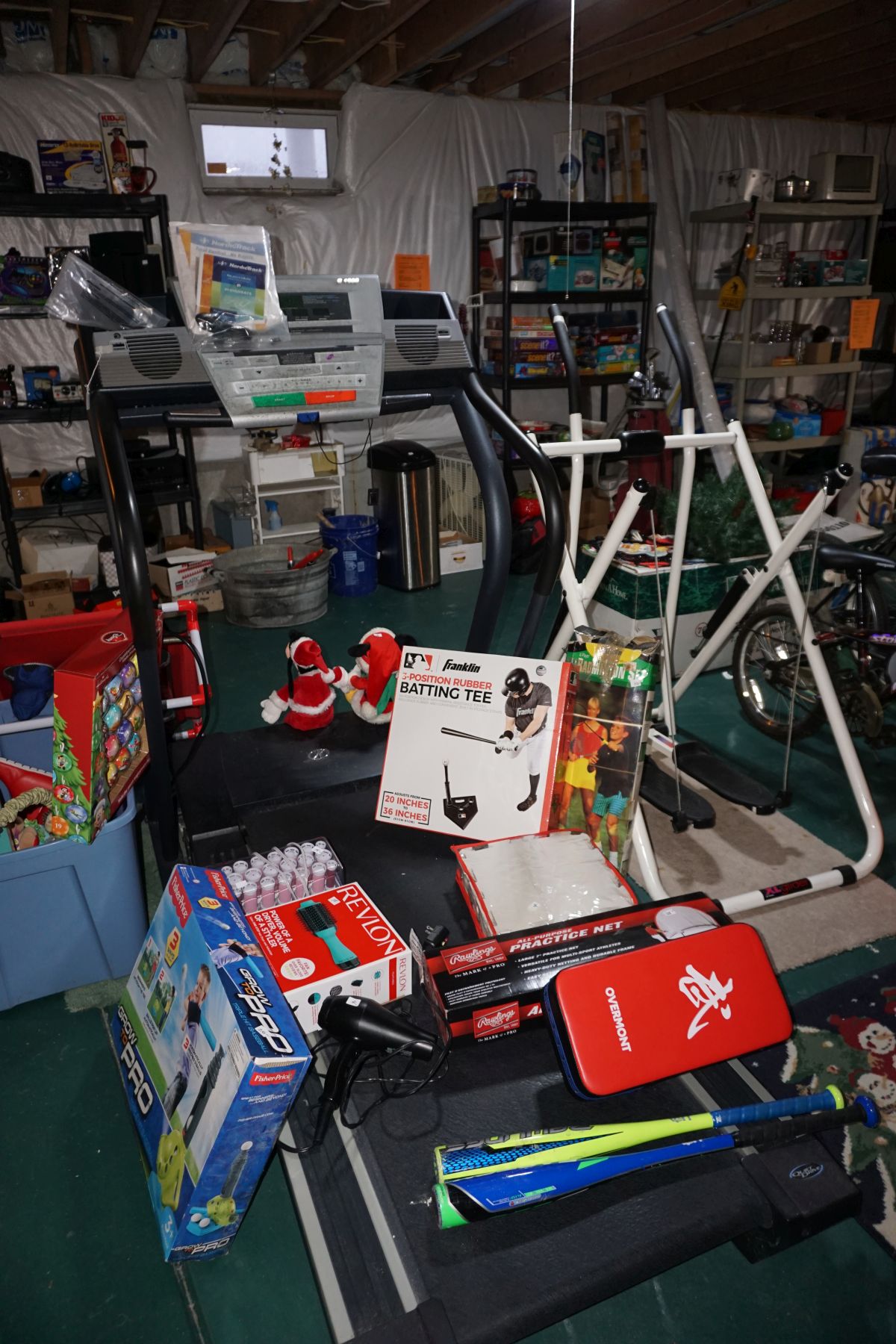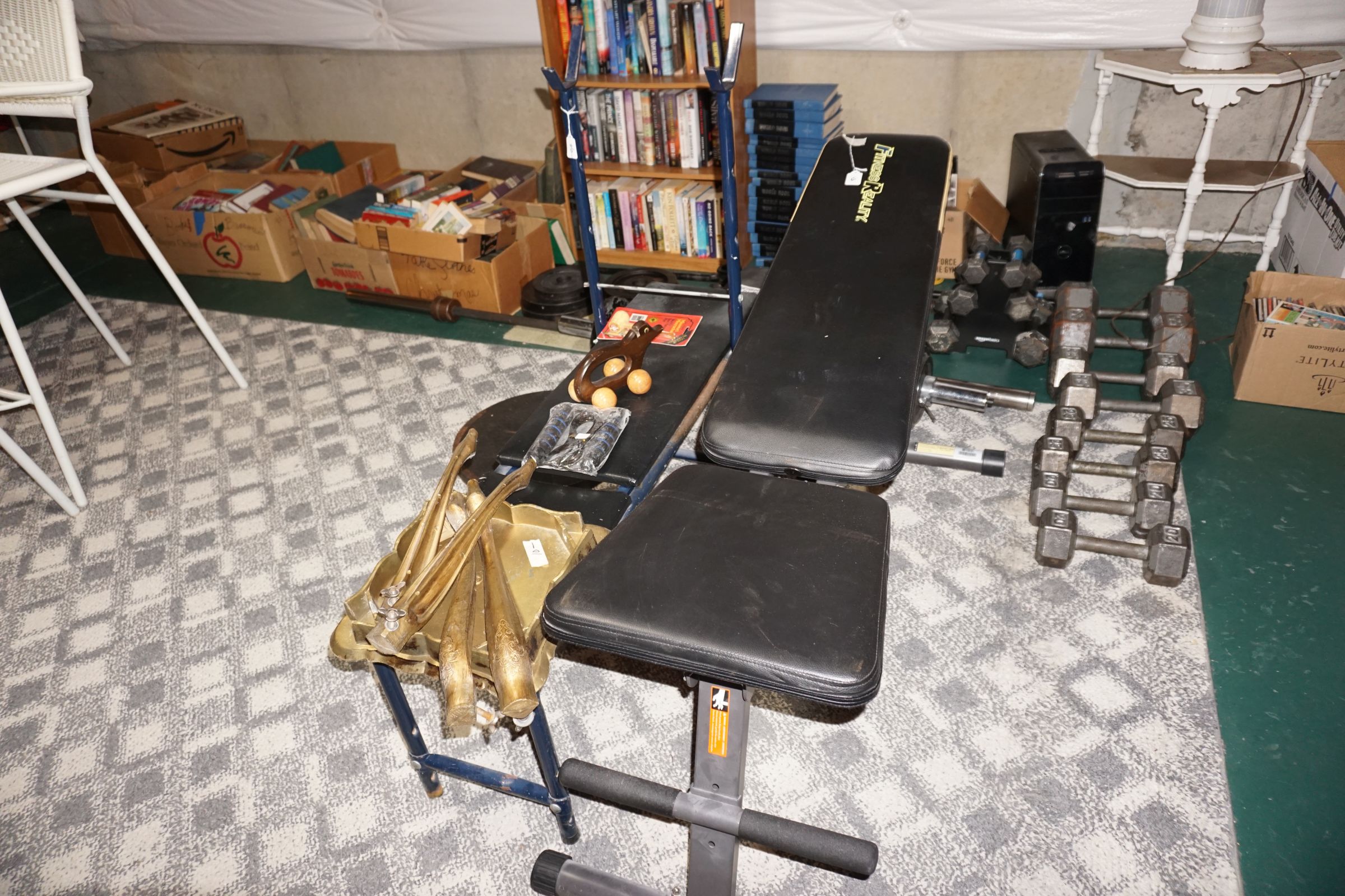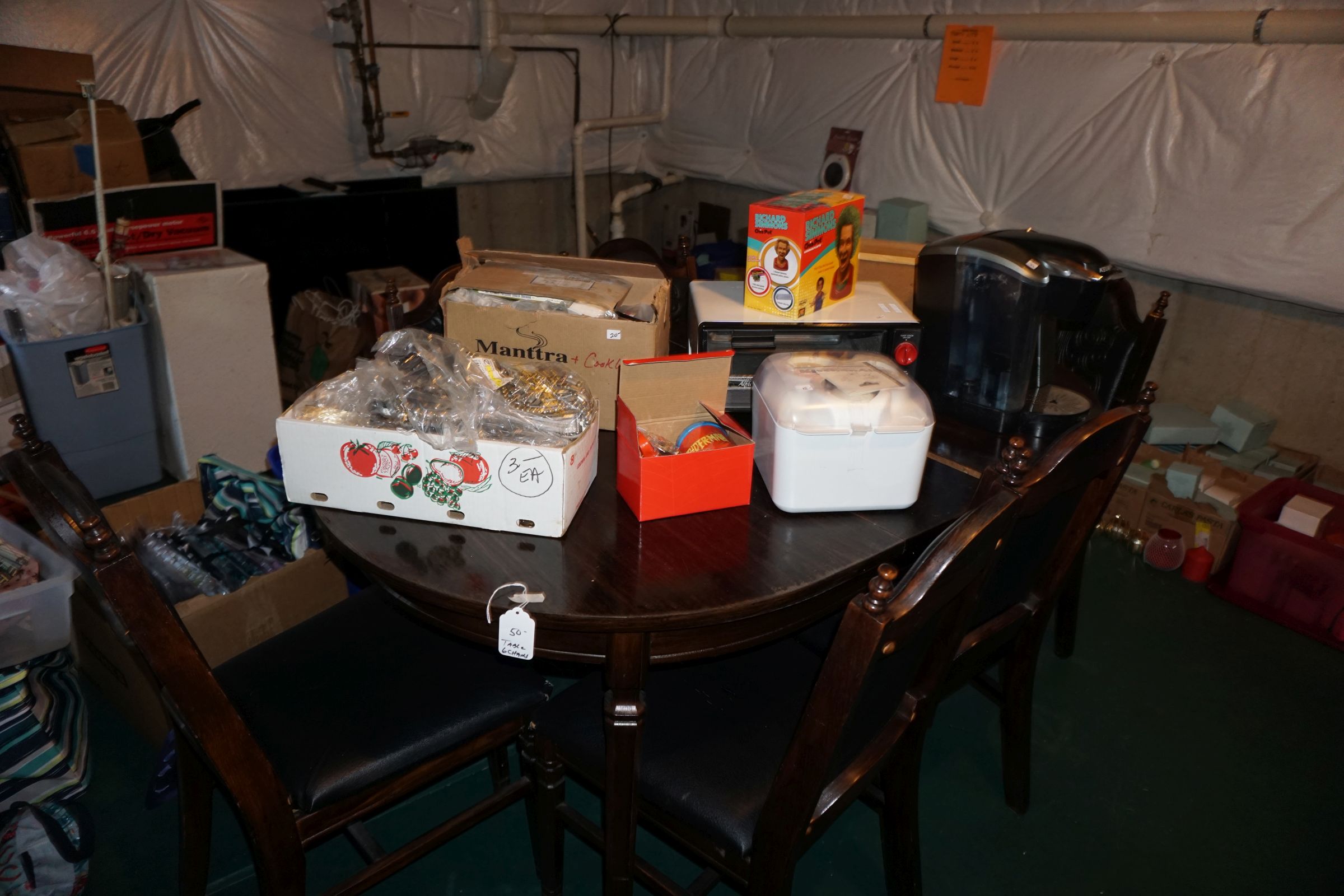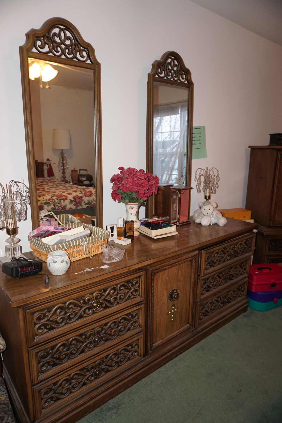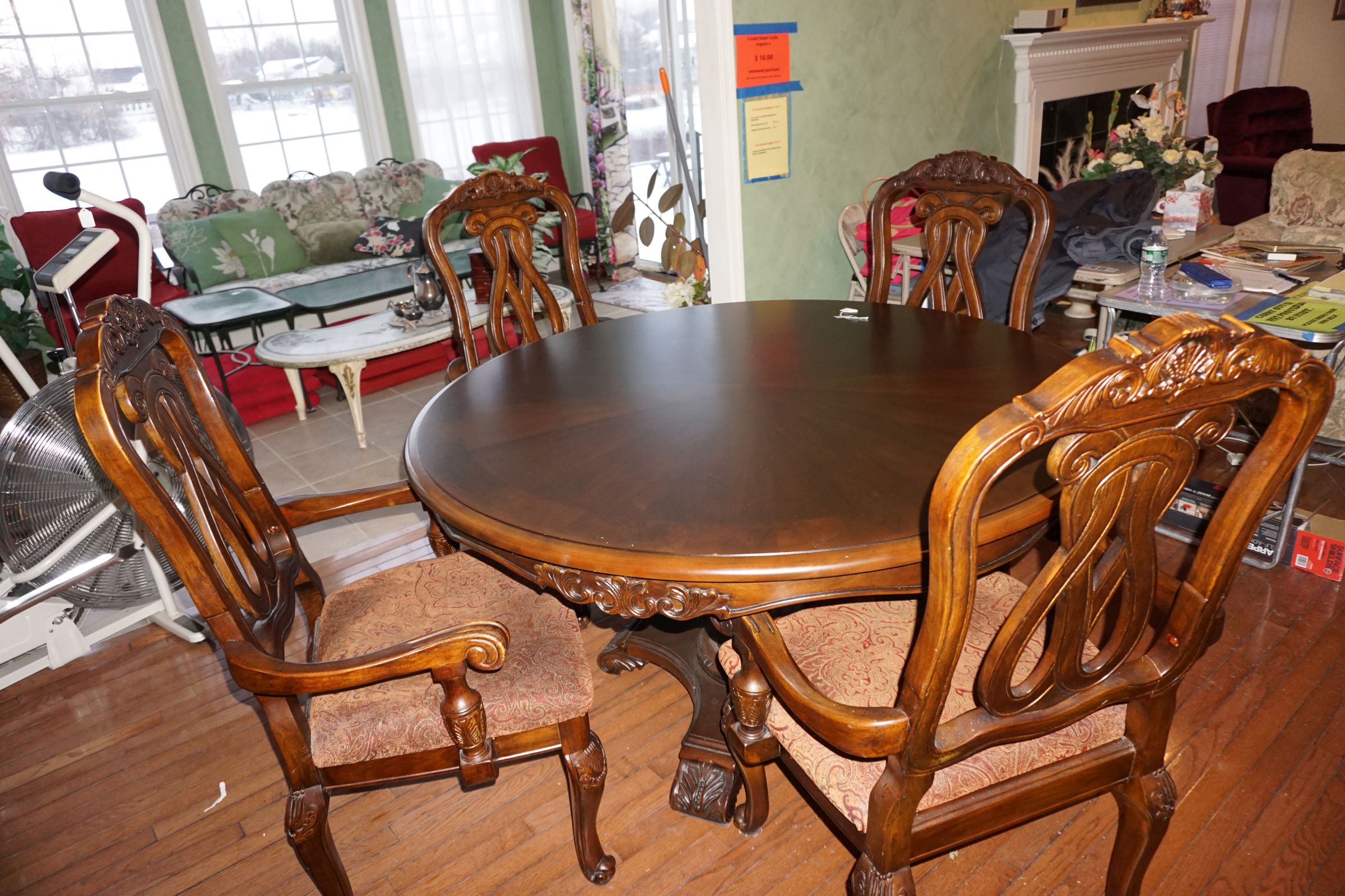 Traditional/Chippendale style Dining room set & China Cabinet, Dinette set, Retro 70’s dinette set, Queen 4 poster Bedroom set, Mediterranean QN bedroom set, entry table, many occasional tables/chairs, lamps including retro brass arch 4 light lamp, men’s & ladies clothing incl few vintage Bills, Tony Sisti original oil painting, other paintings & prints, loads of glass, china, kitchenware, Chippendale style desk, regular & lateral wood file cabinets, new Canon printer, wrought iron patio furniture, jewelry chest & jewelry desk/vanity, LOADS of costume jewelry & some sterling jewelry, books, Records, CD’s, DVD’s, VHS, vintage slide out stereo/turntable, other beds & dressers, 100’s pcs of Party Lite new-in-box, free weights, dumbbells & benches, pr outdoor tall white wicker bar stools, TV’s, electronics, NordicTrack 1900 treadmill, bicycles, sewing, holiday décor, fridge, yard & garden, loads of miscellaneous!!