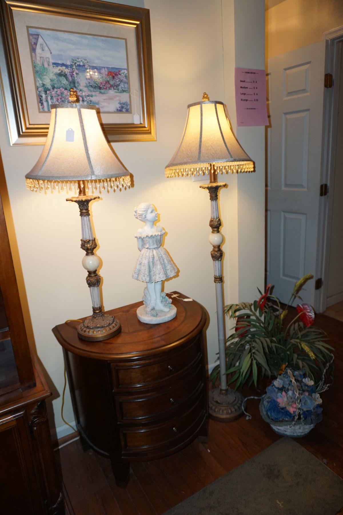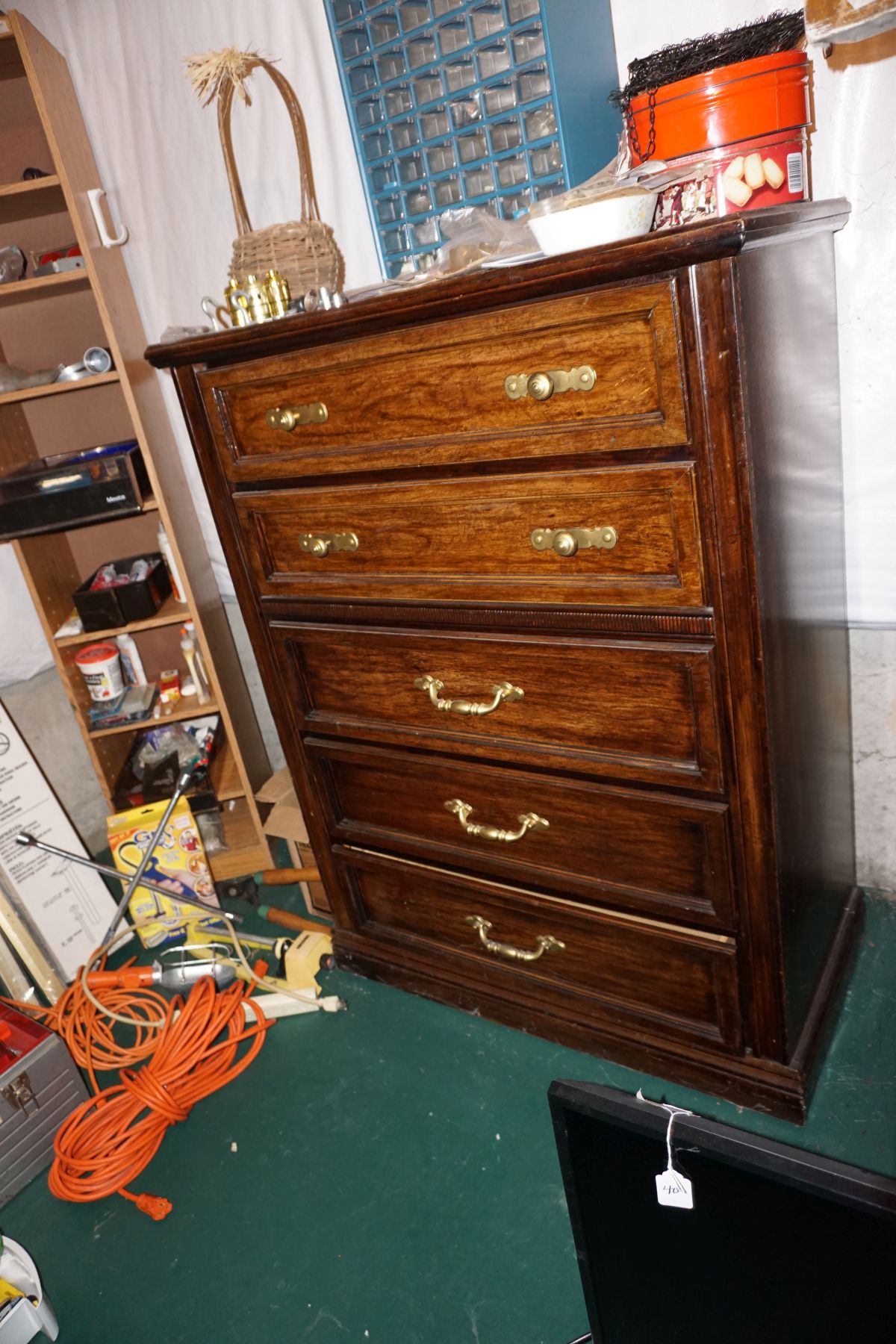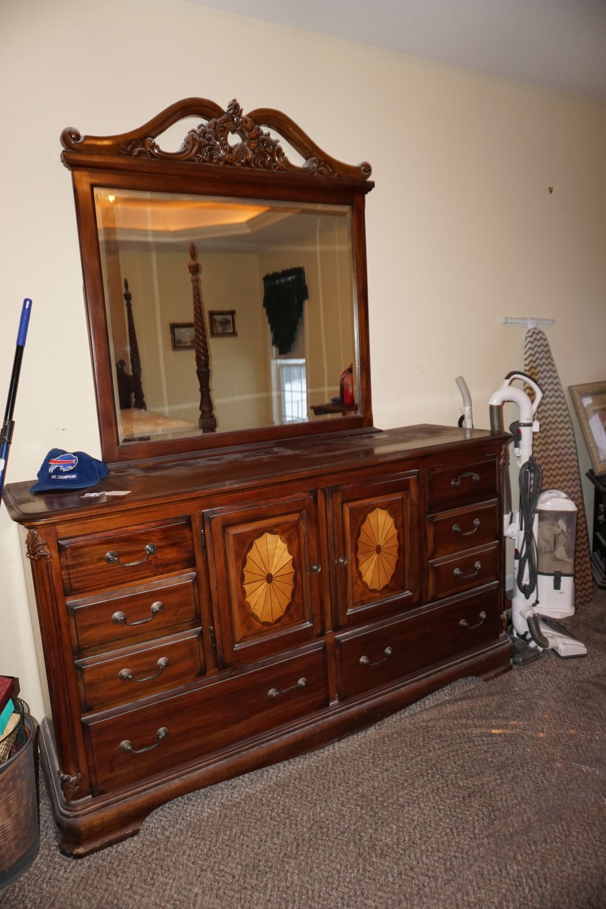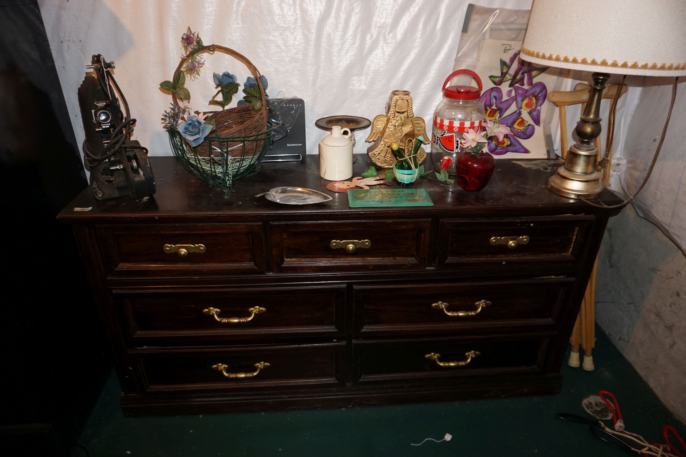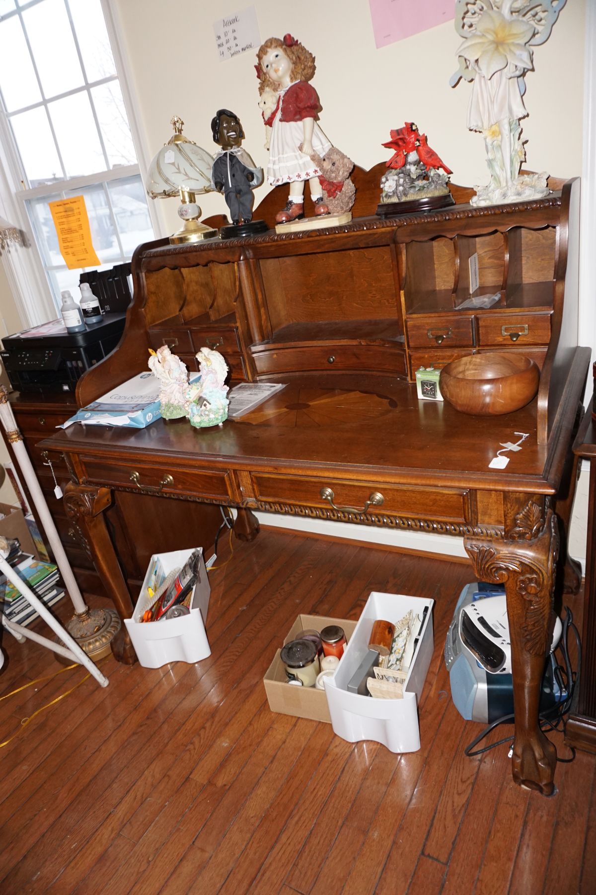 Traditional/Chippendale style Dining room set & China Cabinet, Dinette set, Retro 70’s dinette set, Queen 4 poster Bedroom set, Mediterranean QN bedroom set, entry table, many occasional tables/chairs, lamps including retro brass arch 4 light lamp, men’s & ladies clothing incl few vintage Bills, Tony Sisti original oil painting, other paintings & prints, loads of glass, china, kitchenware, Chippendale style desk, regular & lateral wood file cabinets, new Canon printer, wrought iron patio furniture, jewelry chest & jewelry desk/vanity, LOADS of costume jewelry & some sterling jewelry, books, Records, CD’s, DVD’s, VHS, vintage slide out stereo/turntable, other beds & dressers, 100’s pcs of Party Lite new-in-box, free weights, dumbbells & benches, pr outdoor tall white wicker bar stools, TV’s, electronics, NordicTrack 1900 treadmill, bicycles, sewing, holiday décor, fridge, yard & garden, loads of miscellaneous!!