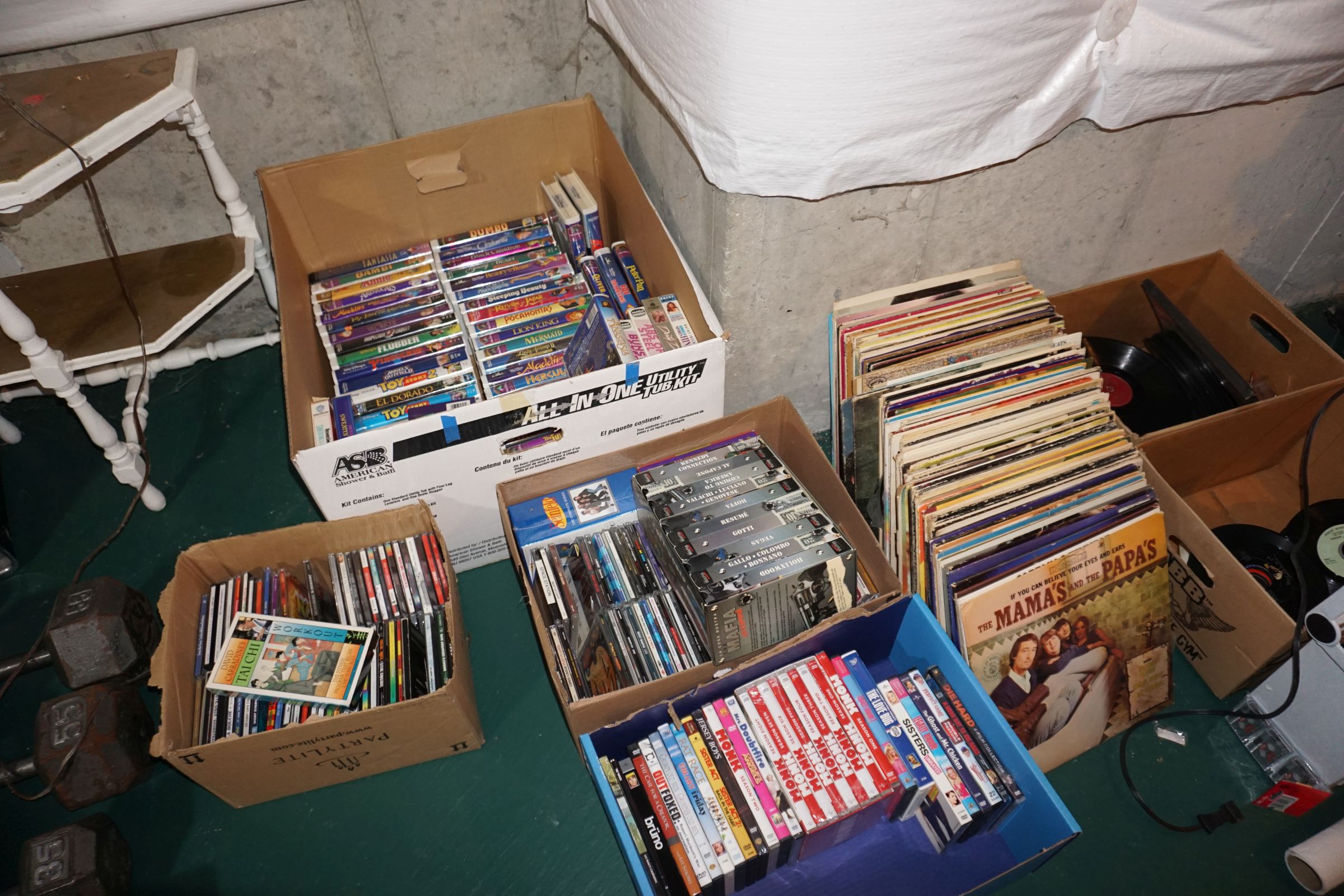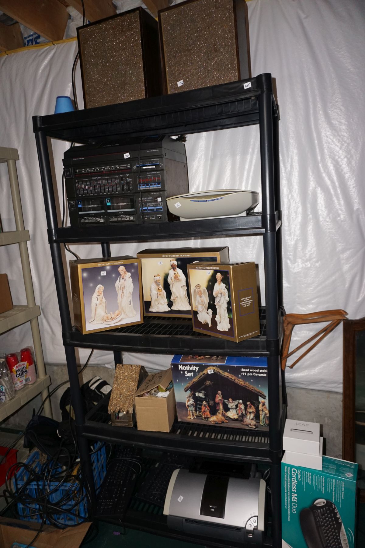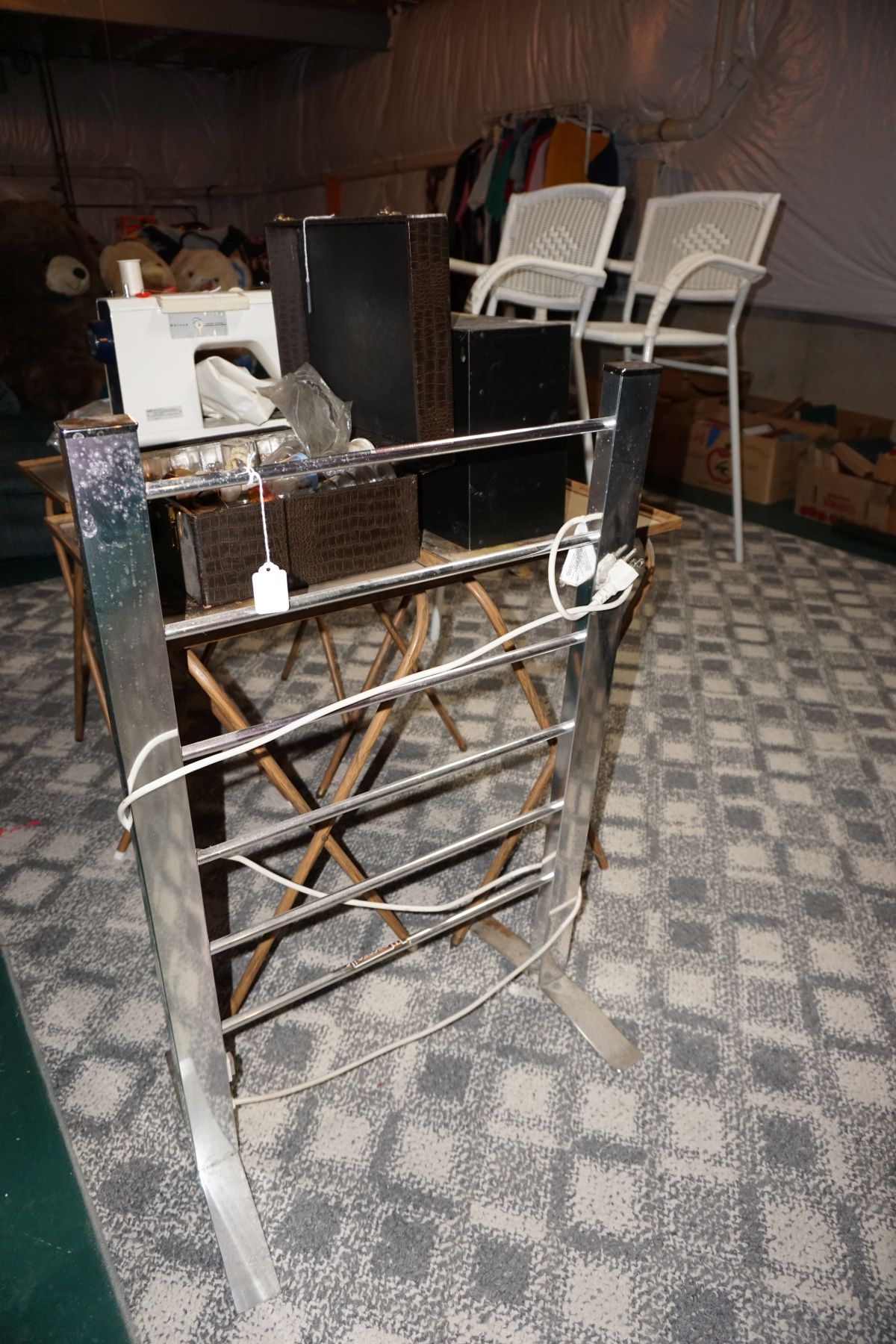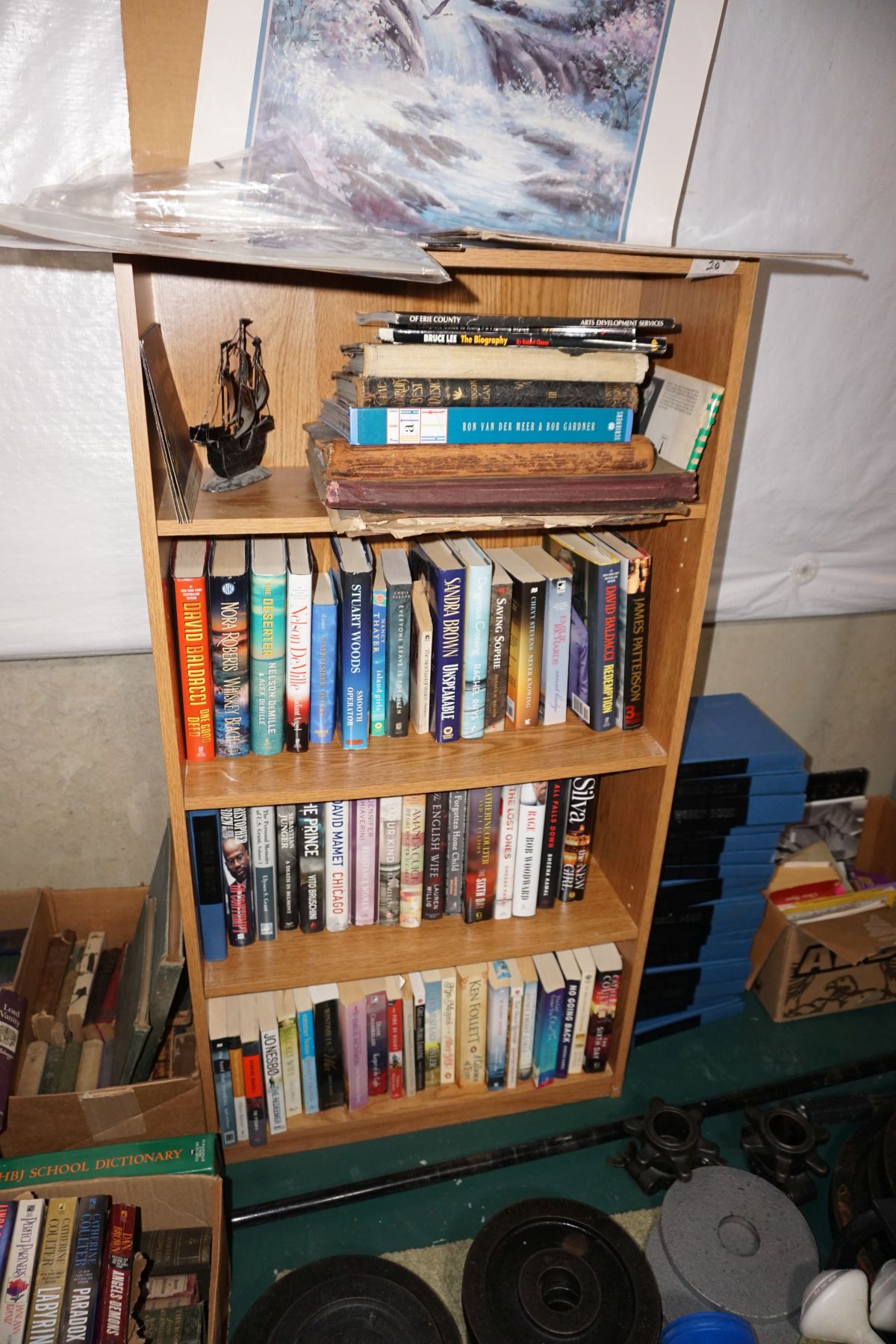 Traditional/Chippendale style Dining room set & China Cabinet, Dinette set, Retro 70’s dinette set, Queen 4 poster Bedroom set, Mediterranean QN bedroom set, entry table, many occasional tables/chairs, lamps including retro brass arch 4 light lamp, men’s & ladies clothing incl few vintage Bills, Tony Sisti original oil painting, other paintings & prints, loads of glass, china, kitchenware, Chippendale style desk, regular & lateral wood file cabinets, new Canon printer, wrought iron patio furniture, jewelry chest & jewelry desk/vanity, LOADS of costume jewelry & some sterling jewelry, books, Records, CD’s, DVD’s, VHS, vintage slide out stereo/turntable, other beds & dressers, 100’s pcs of Party Lite new-in-box, free weights, dumbbells & benches, pr outdoor tall white wicker bar stools, TV’s, electronics, NordicTrack 1900 treadmill, bicycles, sewing, holiday décor, fridge, yard & garden, loads of miscellaneous!!
