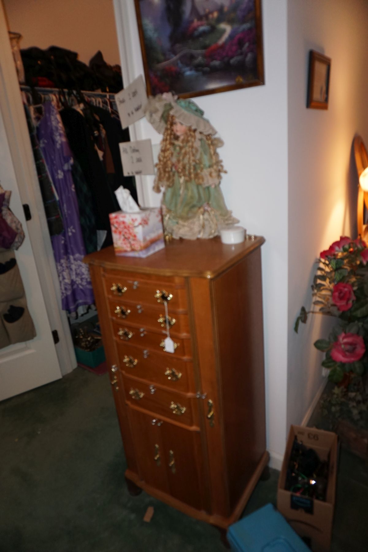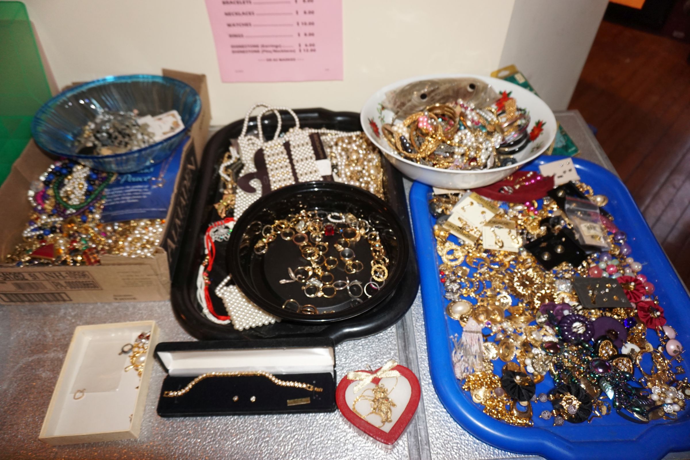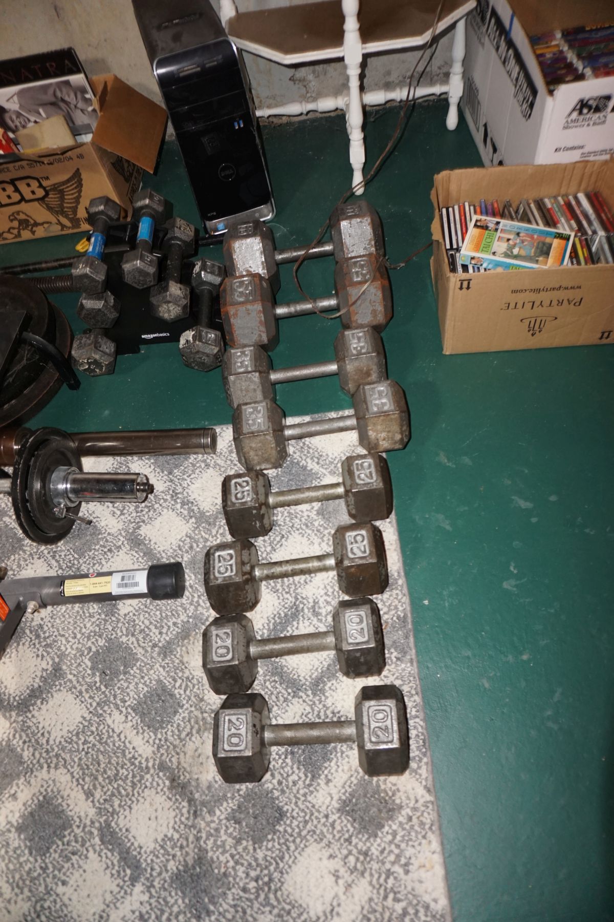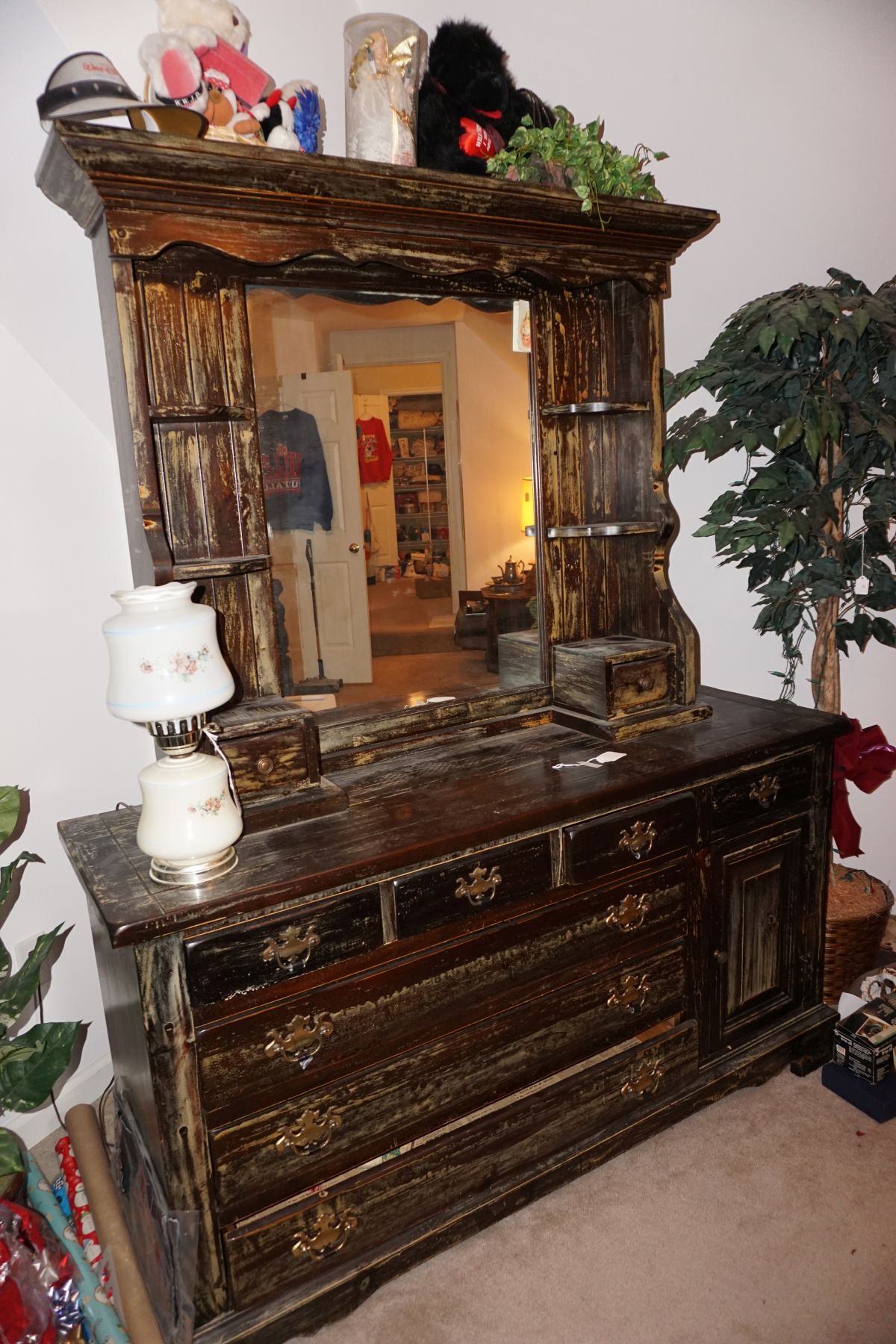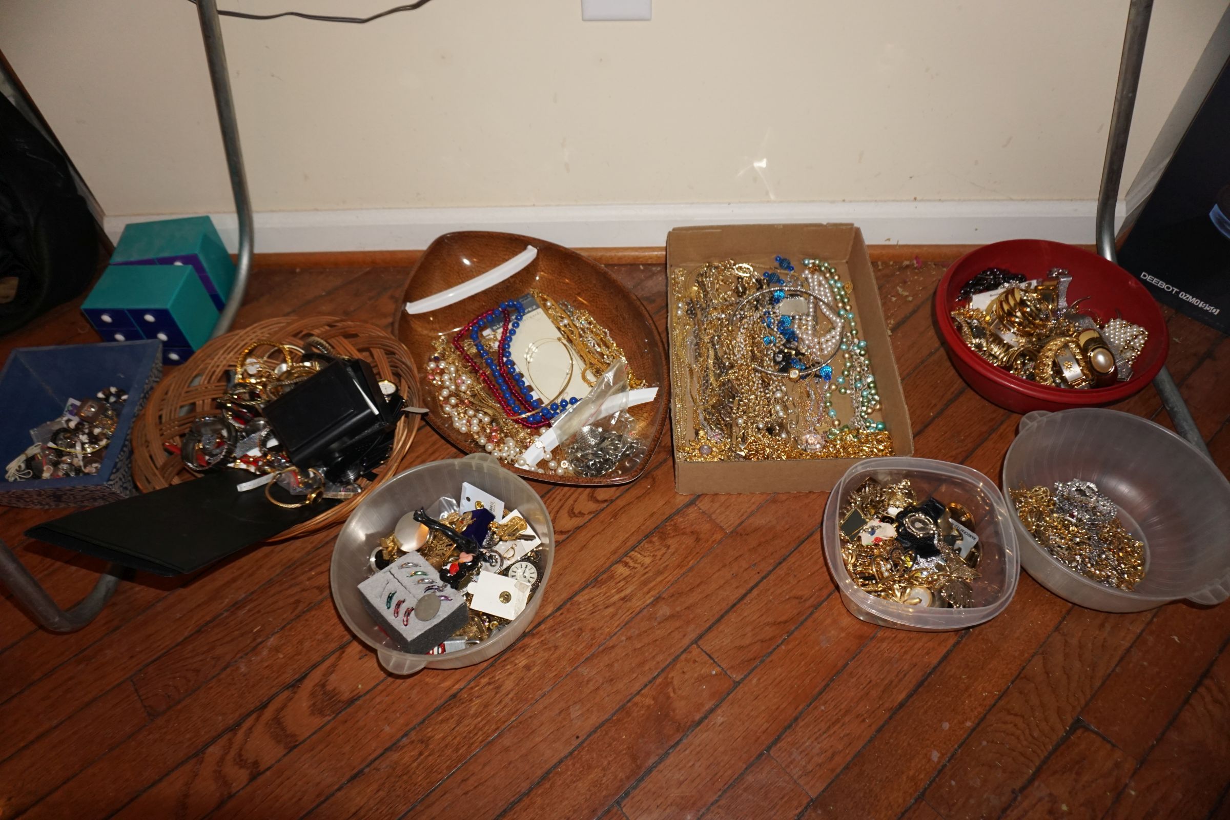 Traditional/Chippendale style Dining room set & China Cabinet, Dinette set, Retro 70’s dinette set, Queen 4 poster Bedroom set, Mediterranean QN bedroom set, entry table, many occasional tables/chairs, lamps including retro brass arch 4 light lamp, men’s & ladies clothing incl few vintage Bills, Tony Sisti original oil painting, other paintings & prints, loads of glass, china, kitchenware, Chippendale style desk, regular & lateral wood file cabinets, new Canon printer, wrought iron patio furniture, jewelry chest & jewelry desk/vanity, LOADS of costume jewelry & some sterling jewelry, books, Records, CD’s, DVD’s, VHS, vintage slide out stereo/turntable, other beds & dressers, 100’s pcs of Party Lite new-in-box, free weights, dumbbells & benches, pr outdoor tall white wicker bar stools, TV’s, electronics, NordicTrack 1900 treadmill, bicycles, sewing, holiday décor, fridge, yard & garden, loads of miscellaneous!!
