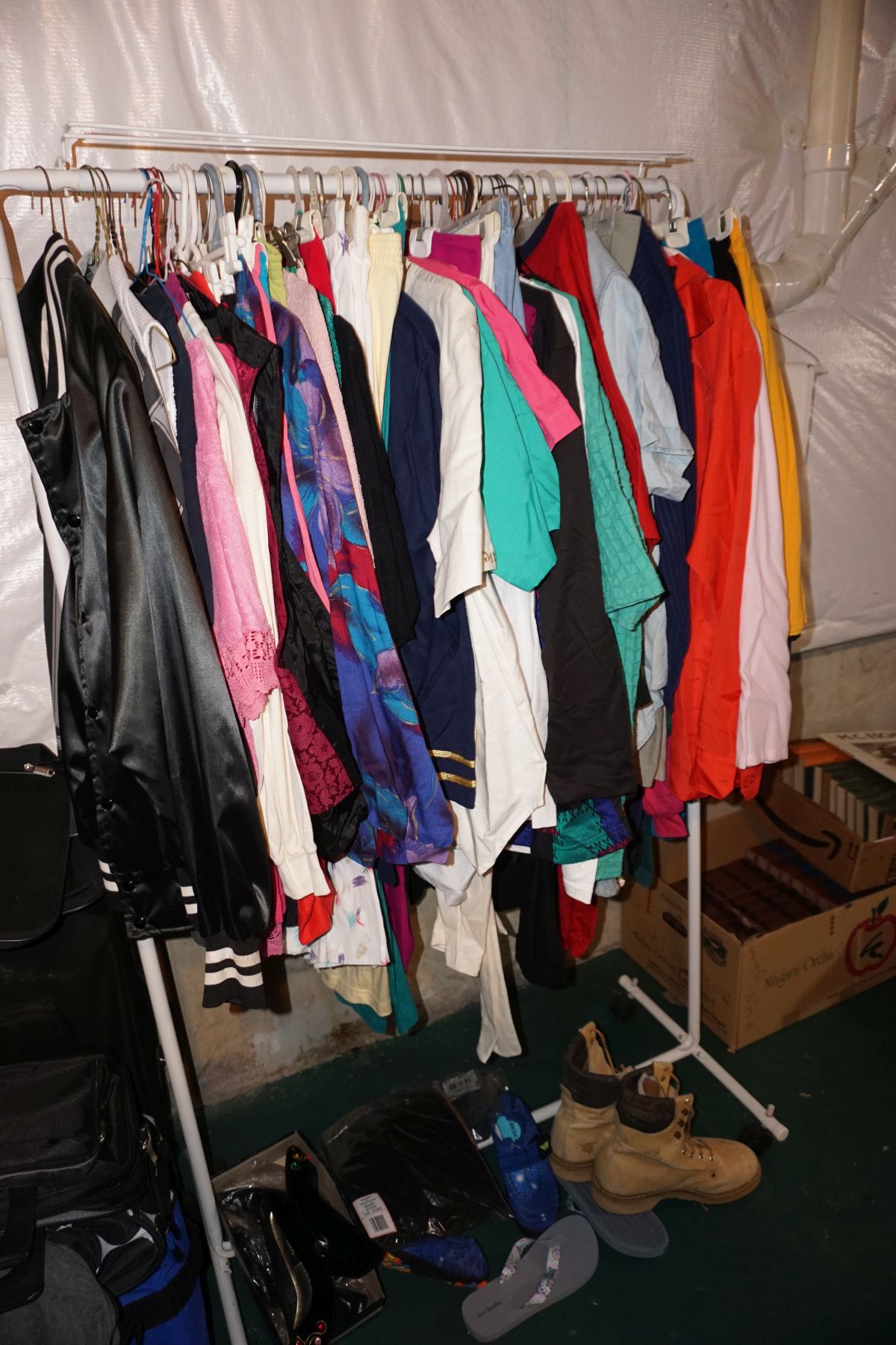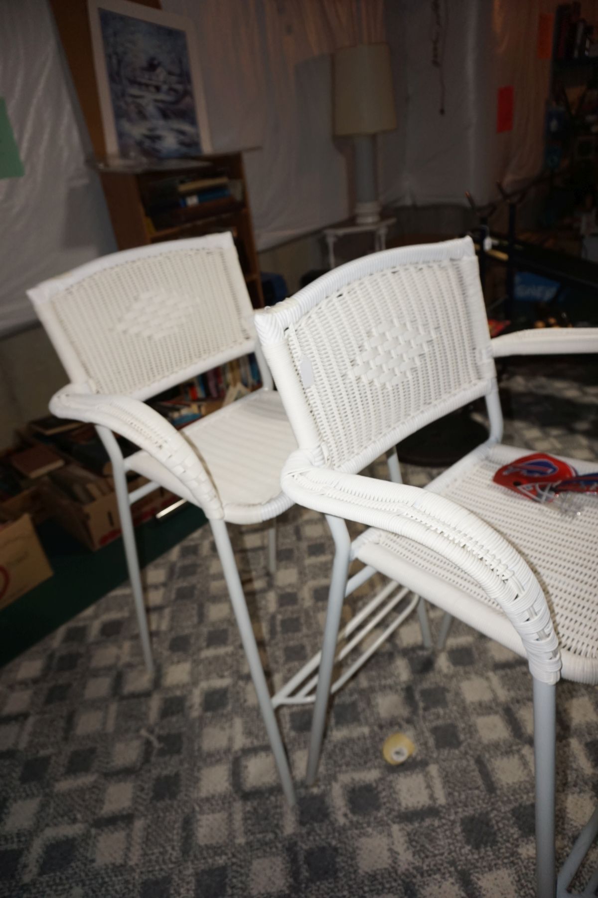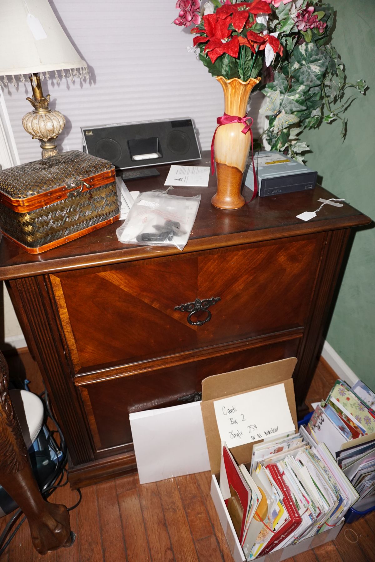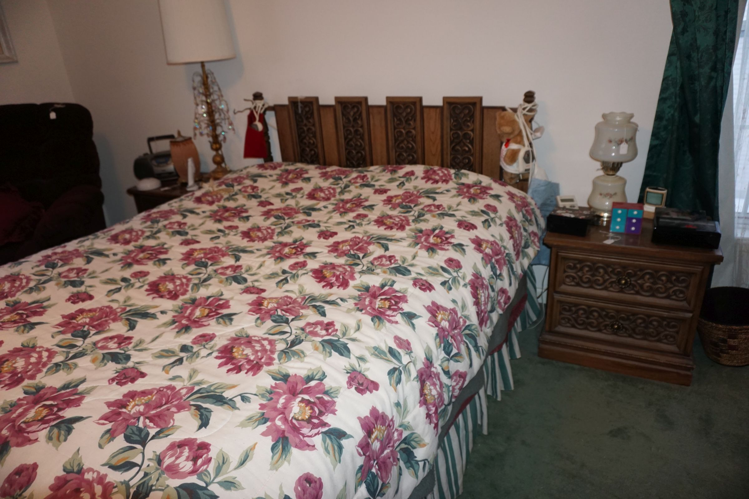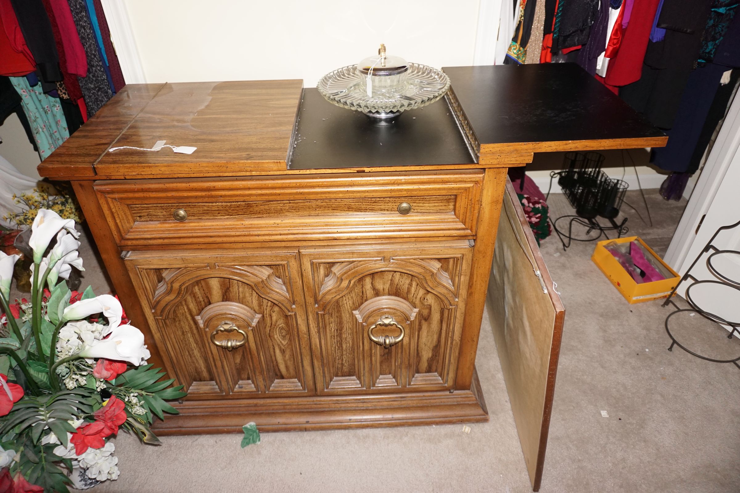 Traditional/Chippendale style Dining room set & China Cabinet, Dinette set, Retro 70’s dinette set, Queen 4 poster Bedroom set, Mediterranean QN bedroom set, entry table, many occasional tables/chairs, lamps including retro brass arch 4 light lamp, men’s & ladies clothing incl few vintage Bills, Tony Sisti original oil painting, other paintings & prints, loads of glass, china, kitchenware, Chippendale style desk, regular & lateral wood file cabinets, new Canon printer, wrought iron patio furniture, jewelry chest & jewelry desk/vanity, LOADS of costume jewelry & some sterling jewelry, books, Records, CD’s, DVD’s, VHS, vintage slide out stereo/turntable, other beds & dressers, 100’s pcs of Party Lite new-in-box, free weights, dumbbells & benches, pr outdoor tall white wicker bar stools, TV’s, electronics, NordicTrack 1900 treadmill, bicycles, sewing, holiday décor, fridge, yard & garden, loads of miscellaneous!!