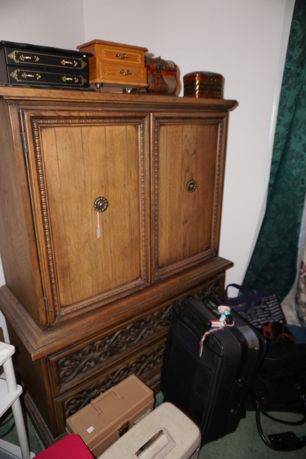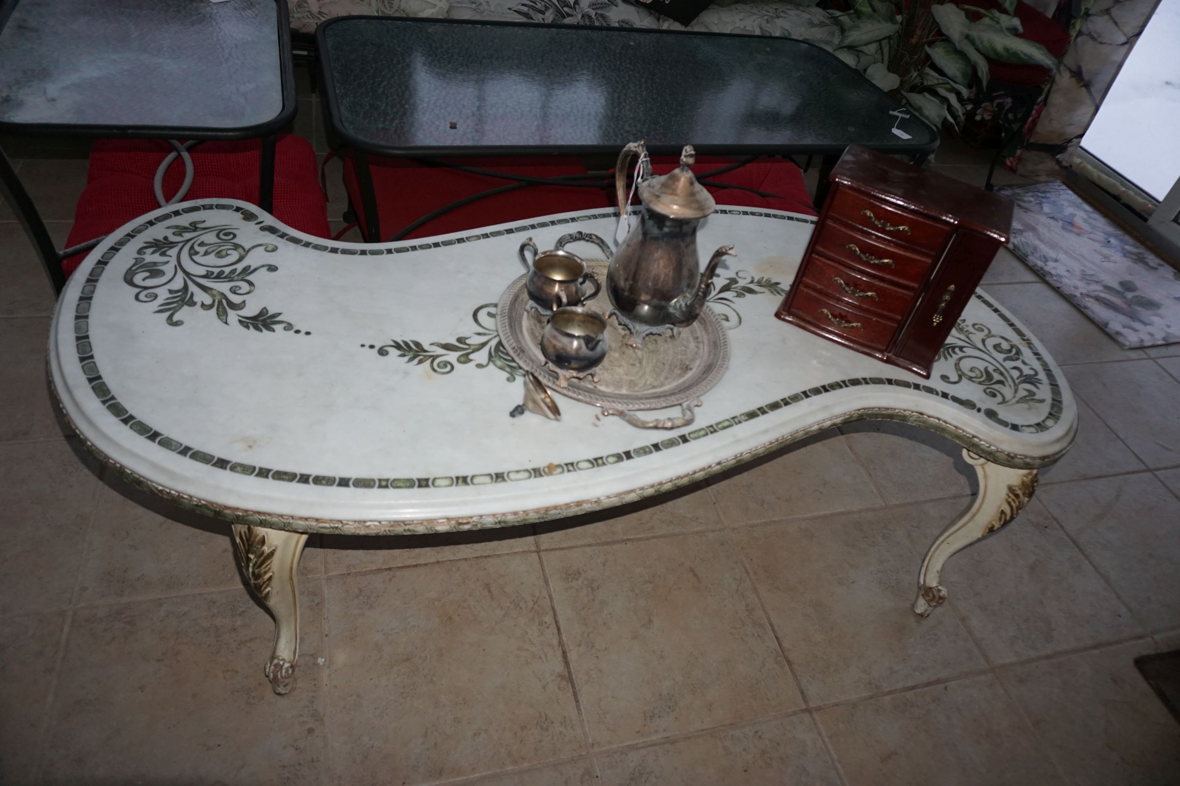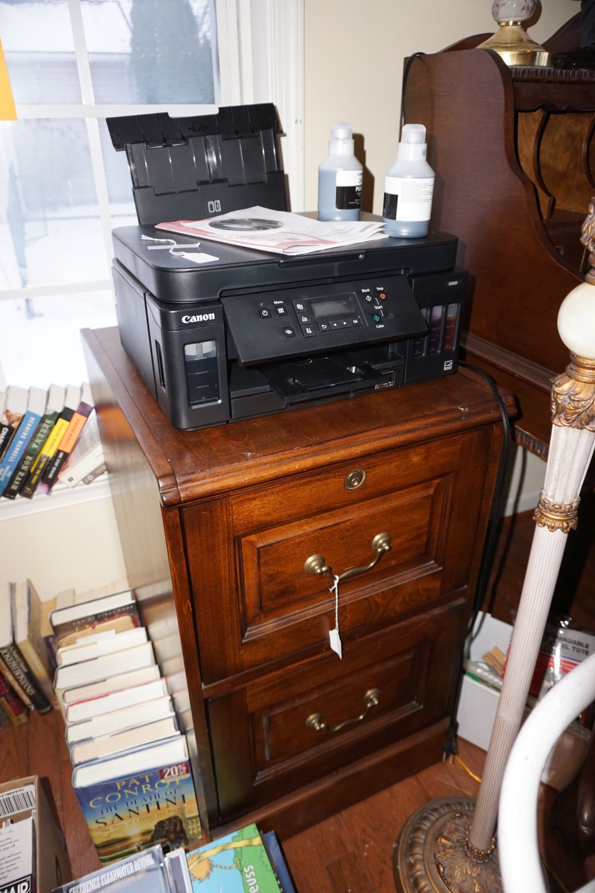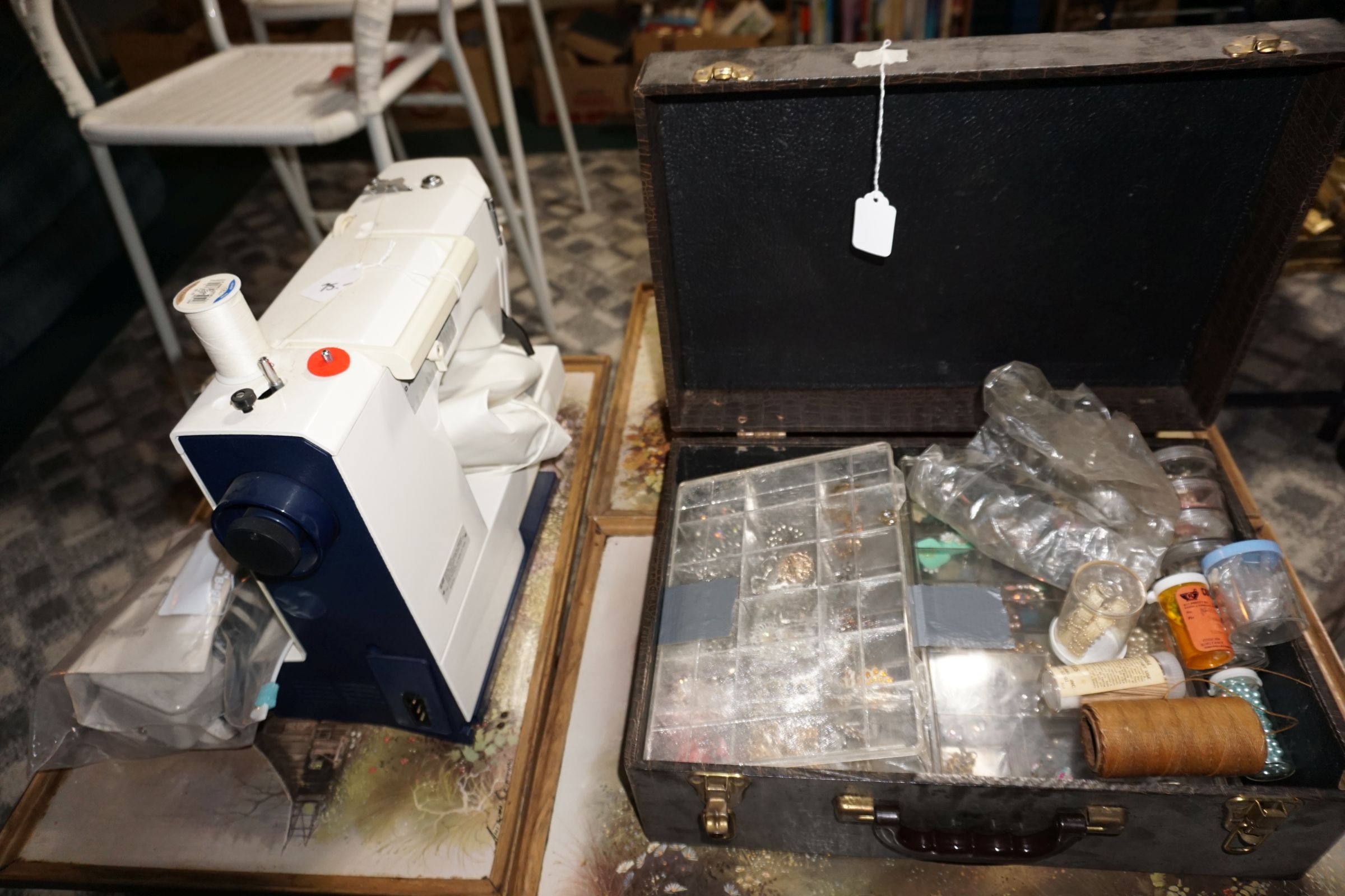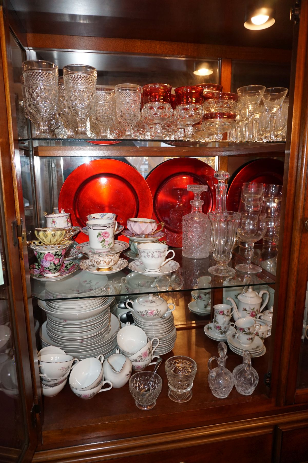 Traditional/Chippendale style Dining room set & China Cabinet, Dinette set, Retro 70’s dinette set, Queen 4 poster Bedroom set, Mediterranean QN bedroom set, entry table, many occasional tables/chairs, lamps including retro brass arch 4 light lamp, men’s & ladies clothing incl few vintage Bills, Tony Sisti original oil painting, other paintings & prints, loads of glass, china, kitchenware, Chippendale style desk, regular & lateral wood file cabinets, new Canon printer, wrought iron patio furniture, jewelry chest & jewelry desk/vanity, LOADS of costume jewelry & some sterling jewelry, books, Records, CD’s, DVD’s, VHS, vintage slide out stereo/turntable, other beds & dressers, 100’s pcs of Party Lite new-in-box, free weights, dumbbells & benches, pr outdoor tall white wicker bar stools, TV’s, electronics, NordicTrack 1900 treadmill, bicycles, sewing, holiday décor, fridge, yard & garden, loads of miscellaneous!!