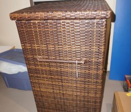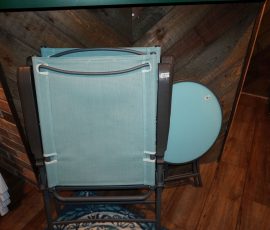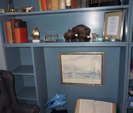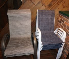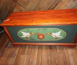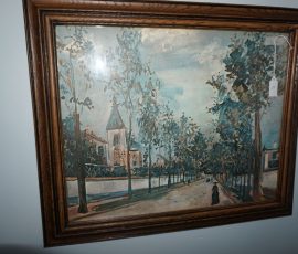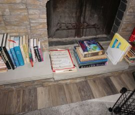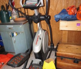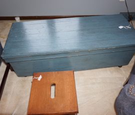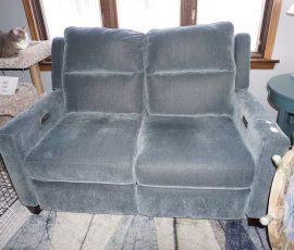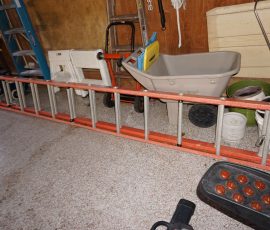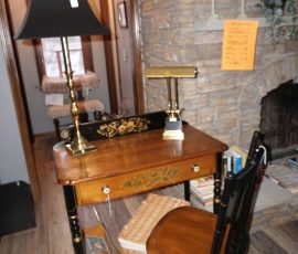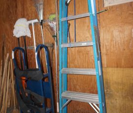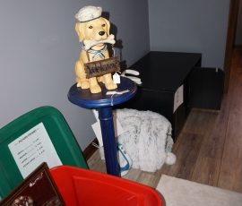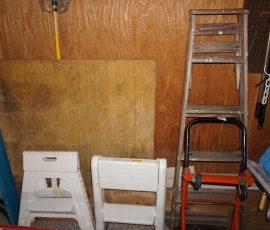 Hitchcock Writing Desk with chair & Demilune table, set of black & gold stenciled nesting tables, Contemporary electric reclining love seat, many occasional tables, chairs & lamps, kitchenware, books, slanted wall bookcase, wine rack, curio cabinet, desk, mirrors, painted mid-century modern dinette set, loads of artwork including originals, signed lithographs & more, Link Taylor solid cherry dressers & night stand, gold powder coated metal queen size bed with quality mattress set, jewelry chest, full bed, wicker chairs & cheval mirror, dressing table, ladies quality clothing including many Lands End & Talbots, tufted camel back settee & matching wing back chair, cedar chests, linens, WWII Seth Thomas U. S. Navy clock, many nautical home décor items, patio furniture, NordicTrack Elliptical, cherry corned etagere woth brass rail, Ethan Allen small 1 drawer stend with brass rail, Contemporary sofa table, contemporary desk & chair, Red Light Therapy light, stone façade electric fireplace, wrought iron shelf unit, Go2Gether snow shoes/walking sticks, cross country skis, area rugs, holiday décor, newer GE freezer, cat accessories, trunk, fiberglass 24 foot & 8 foot ladders, tools, yard & garden, costume jewelry & much misc!