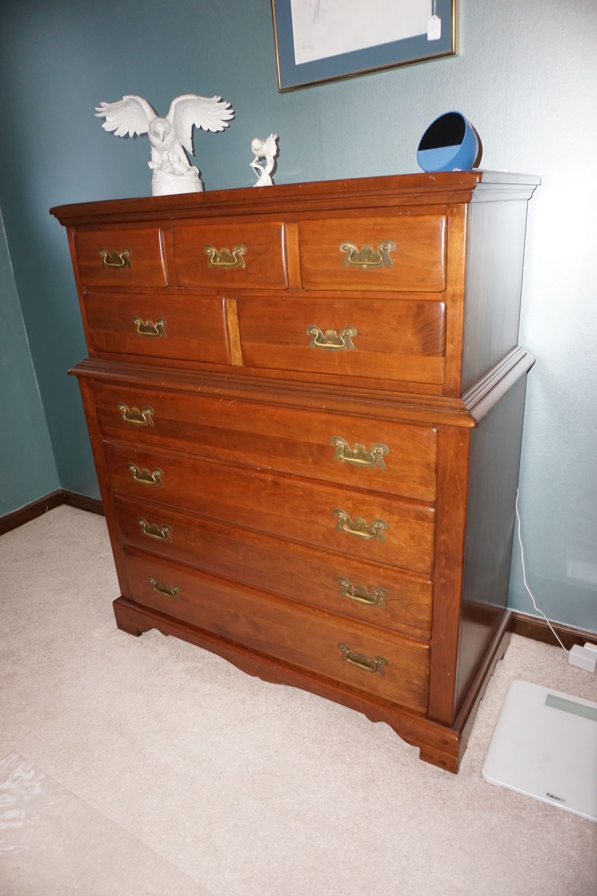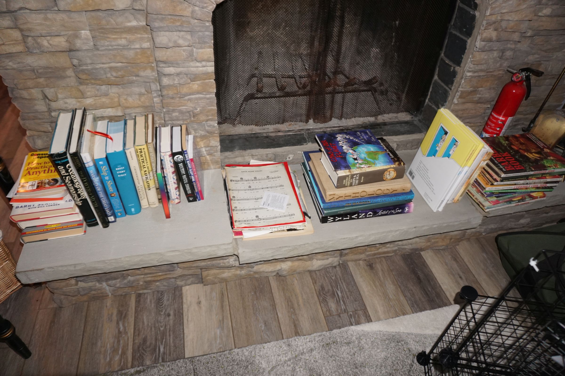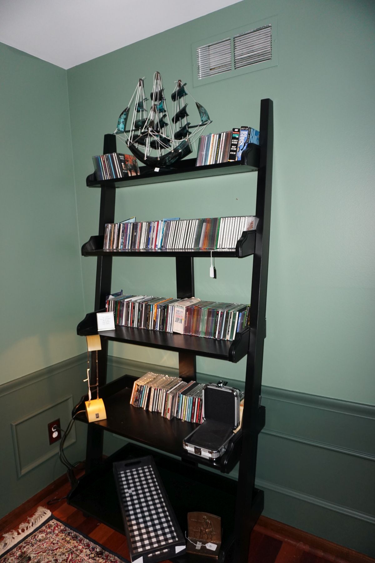 Hitchcock Writing Desk with chair & Demilune table, set of black & gold stenciled nesting tables, Contemporary electric reclining love seat, many occasional tables, chairs & lamps, kitchenware, books, slanted wall bookcase, wine rack, curio cabinet, desk, mirrors, painted mid-century modern dinette set, loads of artwork including originals, signed lithographs & more, Link Taylor solid cherry dressers & night stand, gold powder coated metal queen size bed with quality mattress set, jewelry chest, full bed, wicker chairs & cheval mirror, dressing table, ladies quality clothing including many Lands End & Talbots, tufted camel back settee & matching wing back chair, cedar chests, linens, WWII Seth Thomas U. S. Navy clock, many nautical home décor items, patio furniture, NordicTrack Elliptical, cherry corned etagere woth brass rail, Ethan Allen small 1 drawer stend with brass rail, Contemporary sofa table, contemporary desk & chair, Red Light Therapy light, stone façade electric fireplace, wrought iron shelf unit, Go2Gether snow shoes/walking sticks, cross country skis, area rugs, holiday décor, newer GE freezer, cat accessories, trunk, fiberglass 24 foot & 8 foot ladders, tools, yard & garden, costume jewelry & much misc!