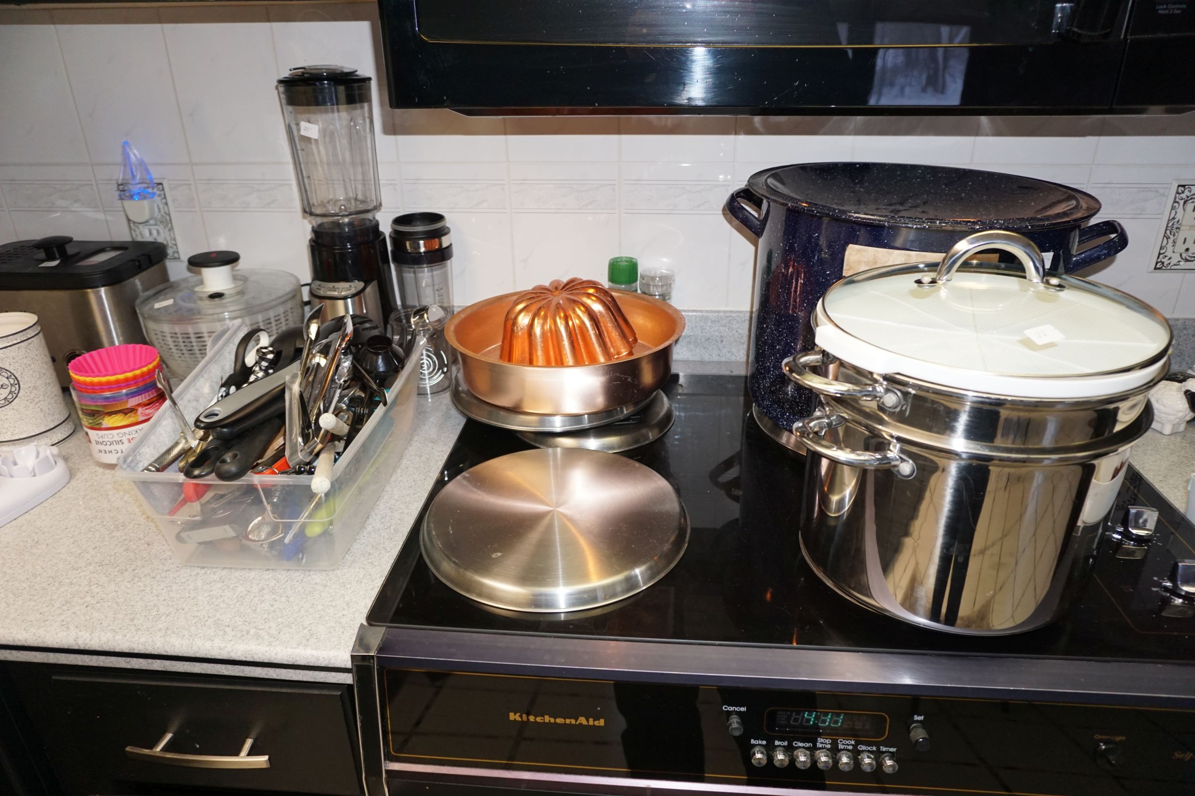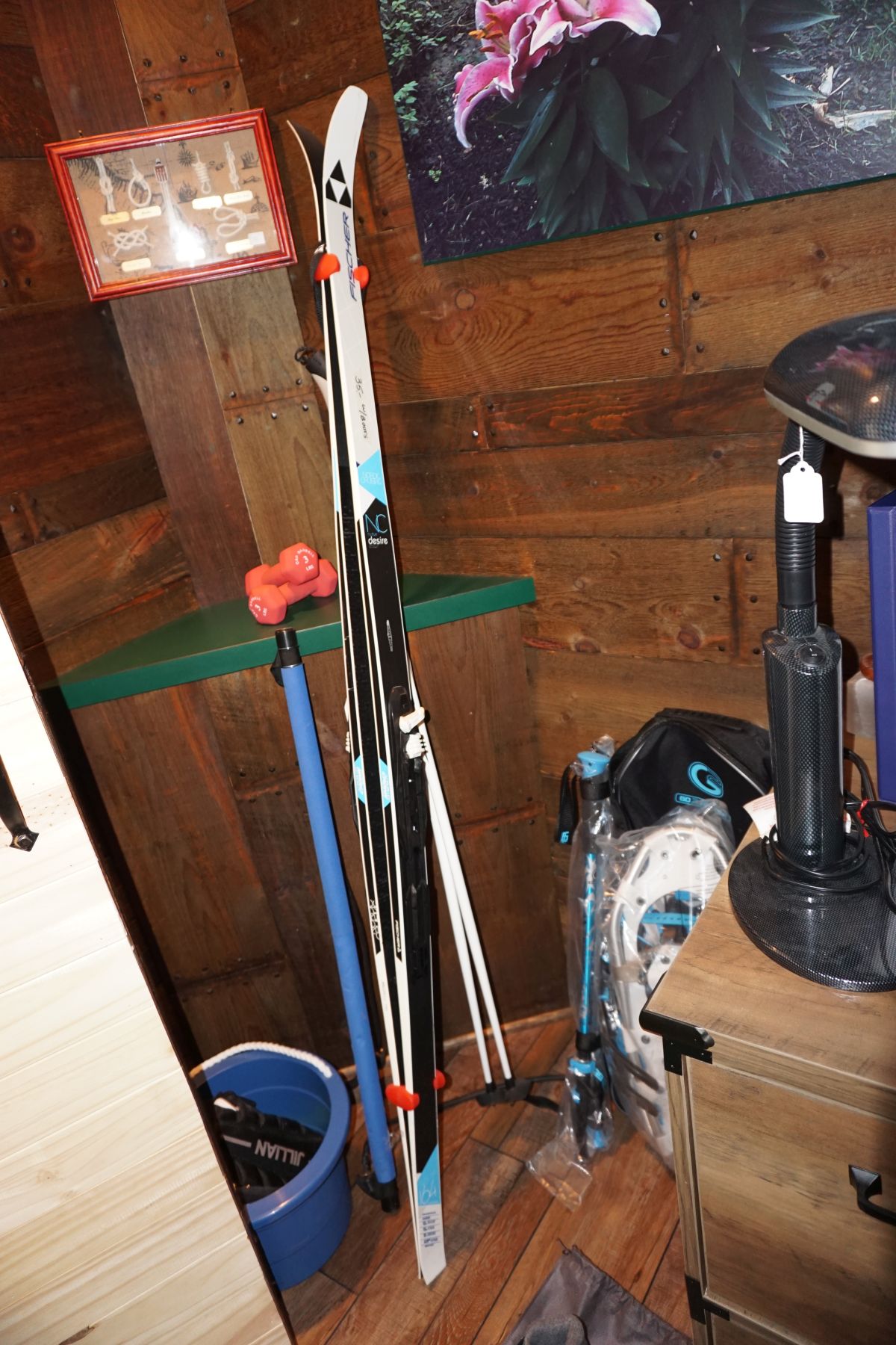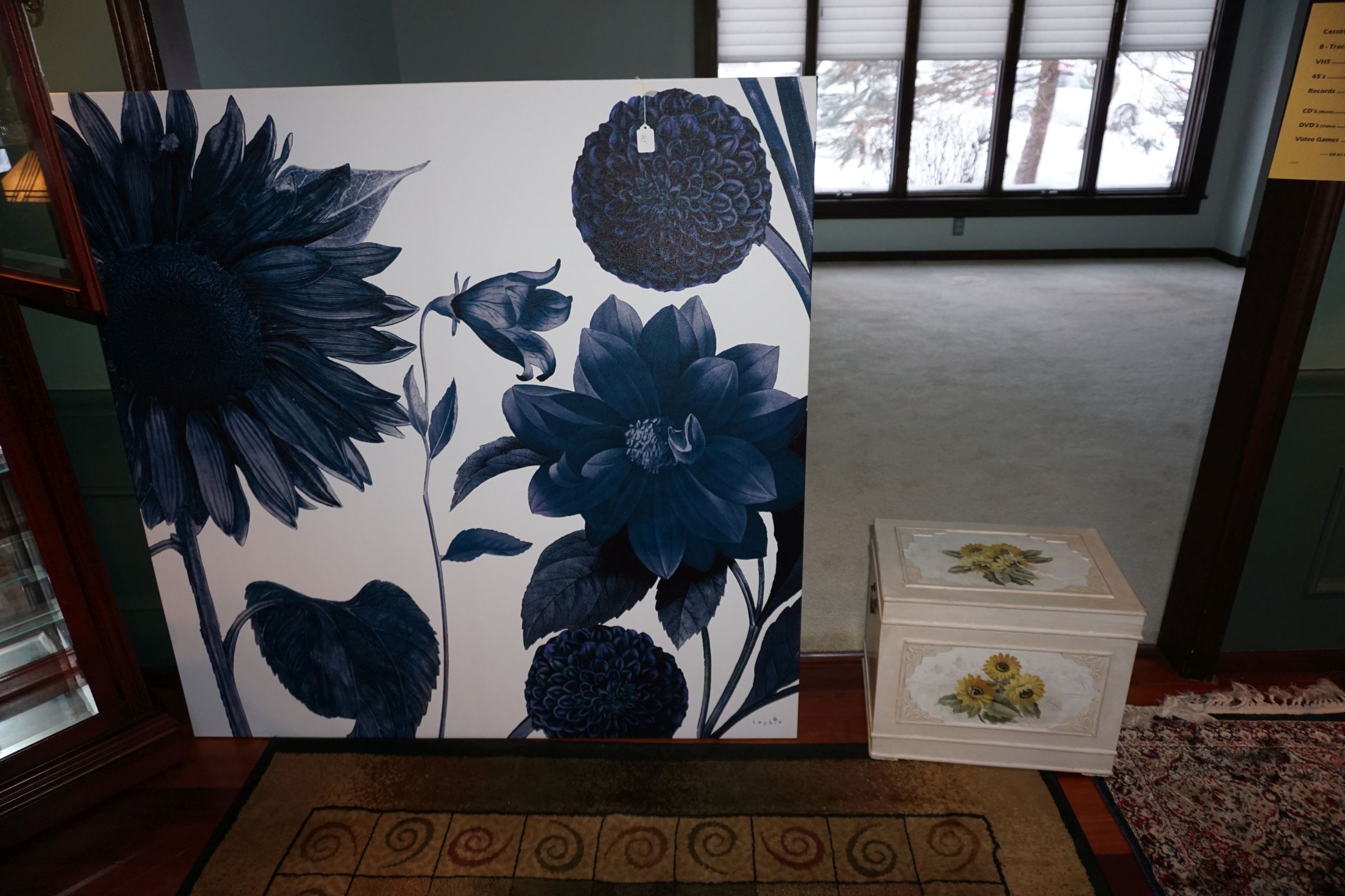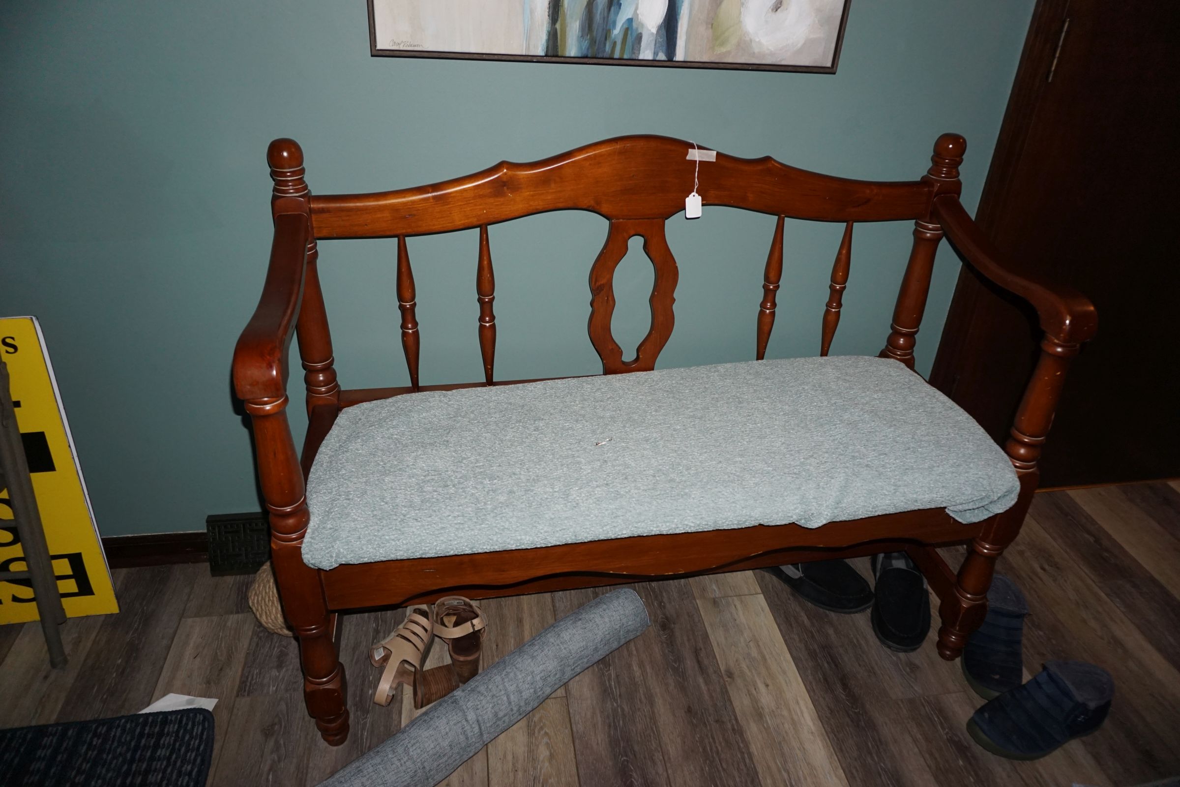Hitchcock Writing Desk with chair & Demilune table, set of black & gold stenciled nesting tables, Contemporary electric reclining love seat, many occasional tables, chairs & lamps, kitchenware, books, slanted wall bookcase, wine rack, curio cabinet, desk, mirrors, painted mid-century modern dinette set, loads of artwork including originals, signed lithographs & more, Link Taylor solid cherry dressers & night stand, gold powder coated metal queen size bed with quality mattress set, jewelry chest, full bed, wicker chairs & cheval mirror, dressing table, ladies quality clothing including many Lands End & Talbots, tufted camel back settee & matching wing back chair, cedar chests, linens, WWII Seth Thomas U. S. Navy clock, many nautical home décor items, patio furniture, NordicTrack Elliptical, cherry corned etagere woth brass rail, Ethan Allen small 1 drawer stend with brass rail, Contemporary sofa table, contemporary desk & chair, Red Light Therapy light, stone façade electric fireplace, wrought iron shelf unit, Go2Gether snow shoes/walking sticks, cross country skis, area rugs, holiday décor, newer GE freezer, cat accessories, trunk, fiberglass 24 foot & 8 foot ladders, tools, yard & garden, costume jewelry & much misc!