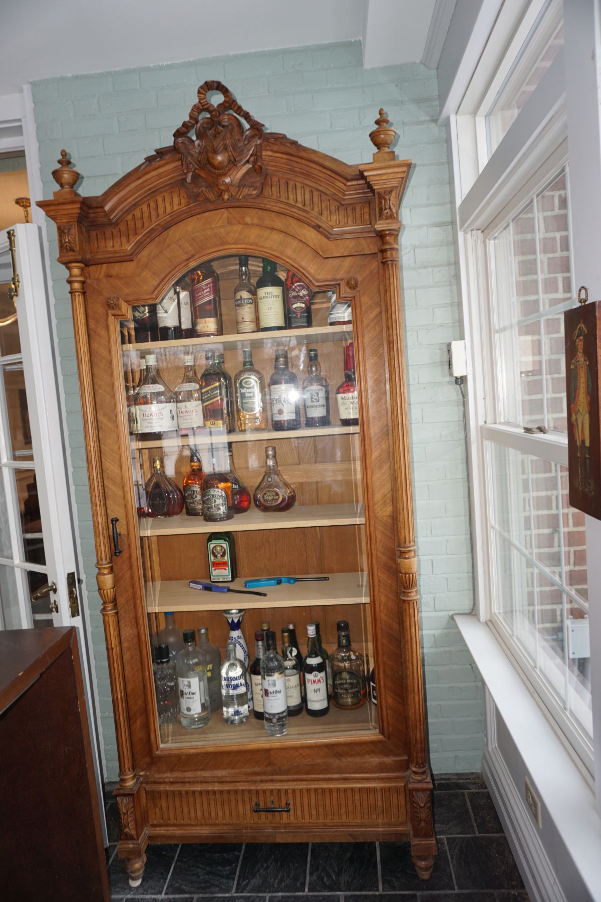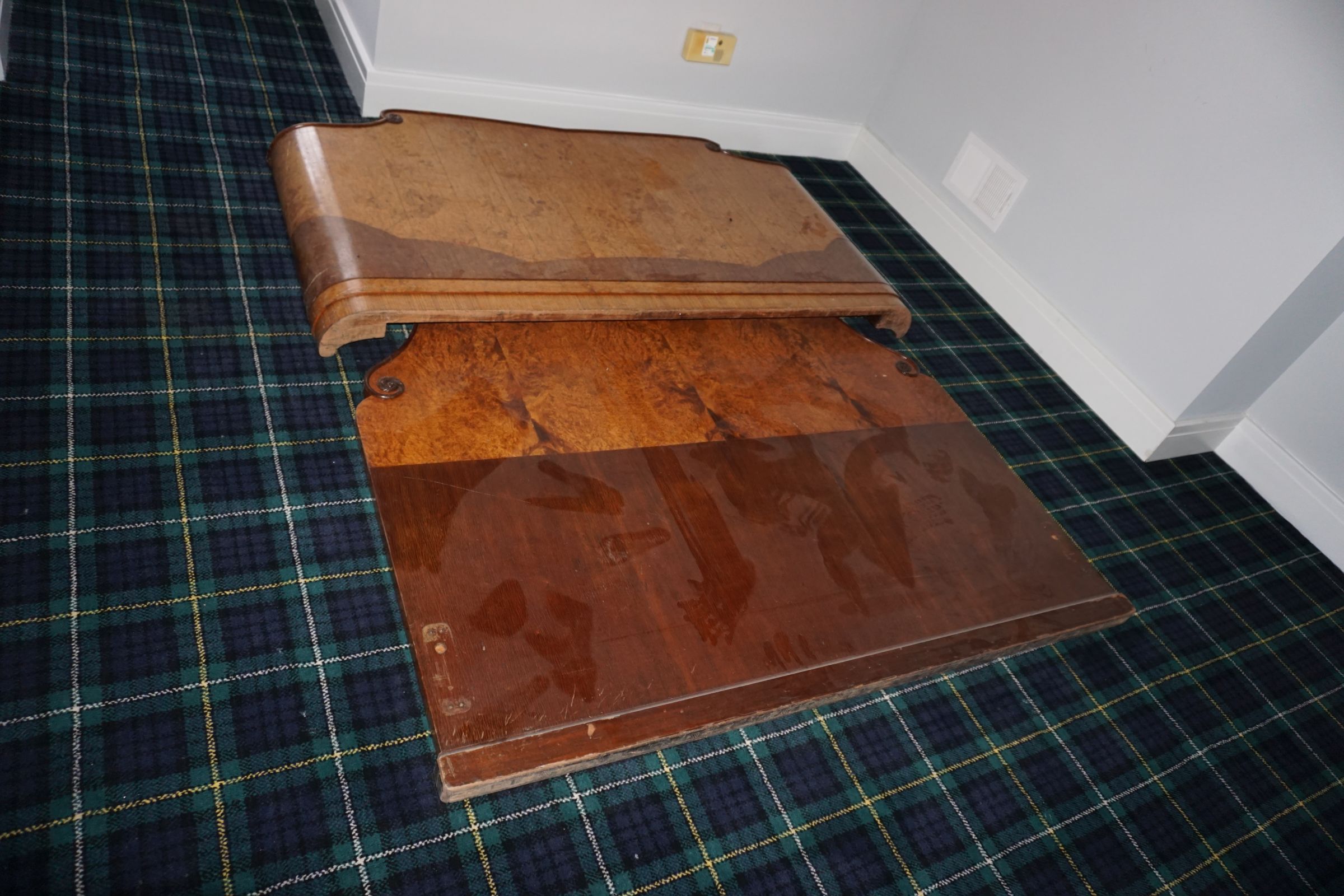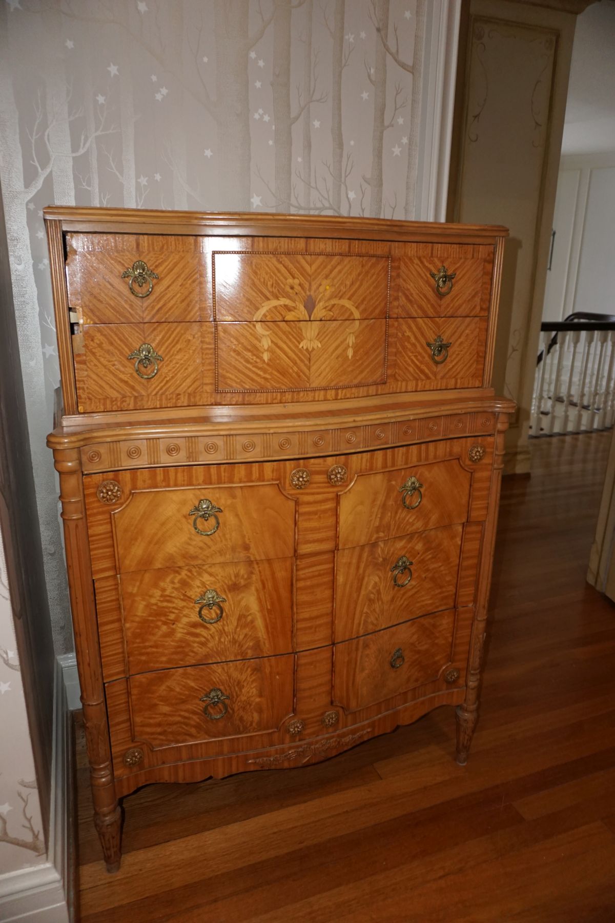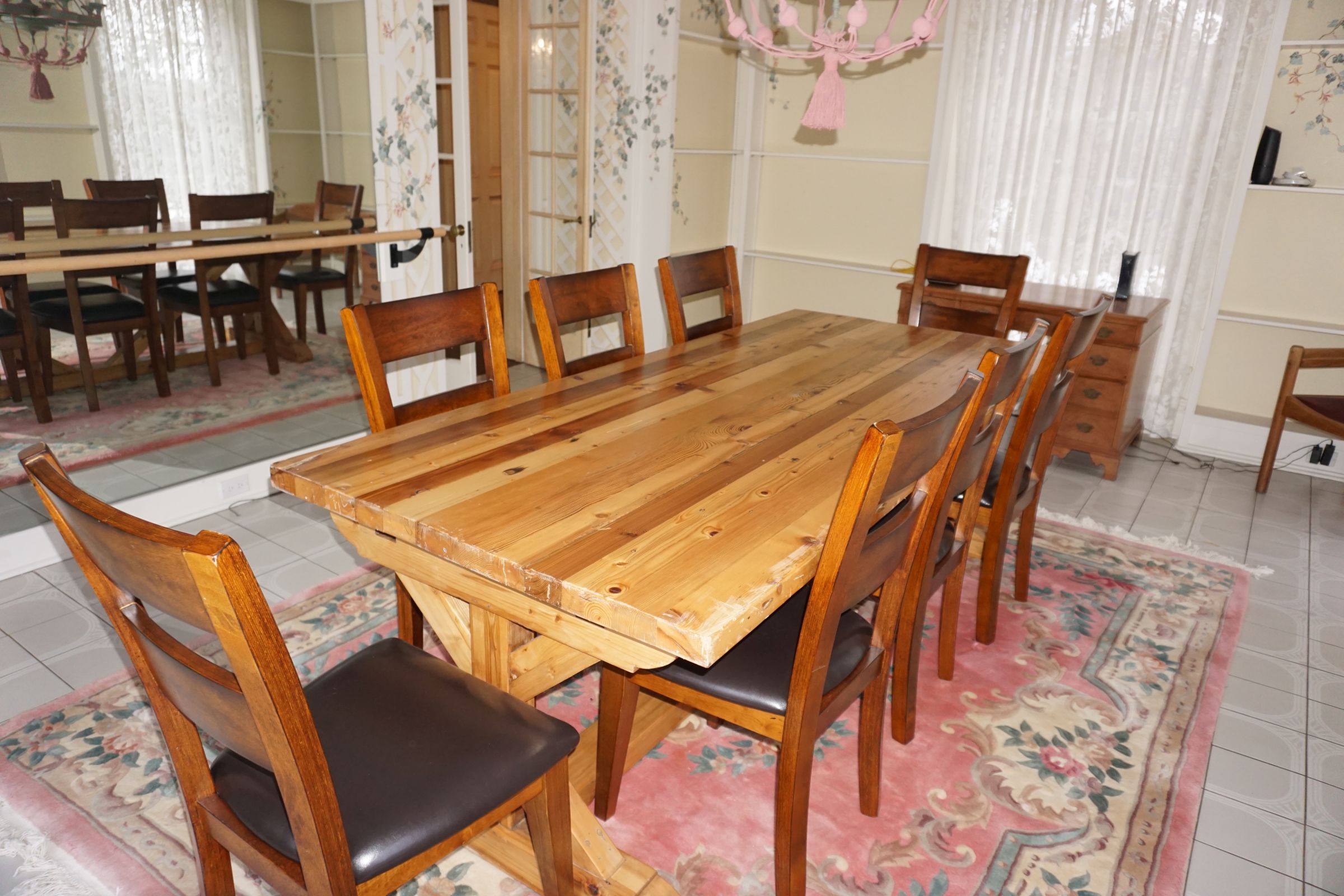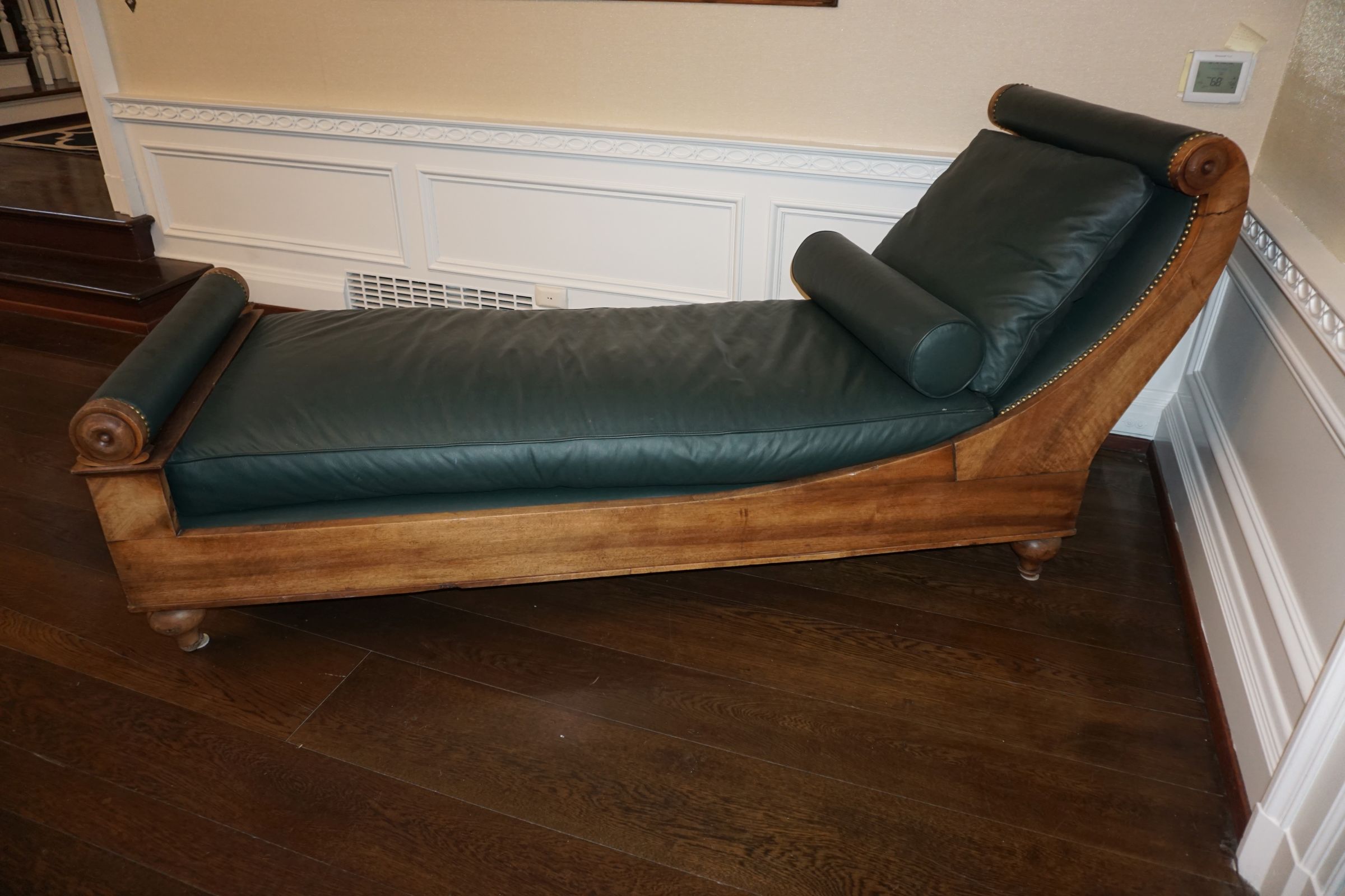 Buffalo Historical High Back Ornately carved Mahogany Settle Bench from The Statler Hilton Hotel, Milo Boughman for Thayer Coggins Walnut Chevron Style with Stainless Steel Base, Set of 9 Antique 19th century carved oak & leather dining room chairs with carved North Wind Face (2 arm chairs & 7 side chairs), pair of Napolean III French Marble Top cabinets with brass ormolu, 10’ x 14’ Bokara Oriental rug, Pine Farmhouse Trestle dining table, set of 8 leather seated chairs, carved Chinese oriental rug, kneehole desk, pair of brass & chrome 2 door cabinets, pair of Asian wall hangings, area rugs, Fox Hunt Oil on Canvas painting by Domingo, Baker Furniture Empire banded mahogany drum table, Louis Phillipe style walnut & leather fainting couch, Mitchel Gold & Bob Williams leather & metal large ottoman, pair of matching tweed style contemporary sofas, Baker Furniture Round pedestal console table, tapestry wall hanging, Large oil on canvas fruit still life in ornate frame, oil on canvas painting of village street scene, Samsung x large TV, Restoration Hardware Mercantile Collection chest/cabinet, pair of reclaimed wood side tables, Baker Furniture bi level coffee table, leather sofa, pair of ornate French provincial lamps, leather recliner, Barbara Barry Collection for Baker Furniture dining table with two leaves & 4 chairs, Set of 4 Butler Everson wood & metal bar stools, Antique French Walnut Armoire, Pair of Vintage Cast Aluminum Barcelona Chairs ( Miles Van Der Rohe), Brutalist chairs & tables, King size tufted upholstered bed, cedar chest, dressers, pair of Queen Size Bassett beds & matching night stands, bar stools, leather sectional, kitchenware, quality patio furniture including two sets of table & chairs, wicker sofa & pair of chairs, metal sofas & table, chaise lounges & more!!