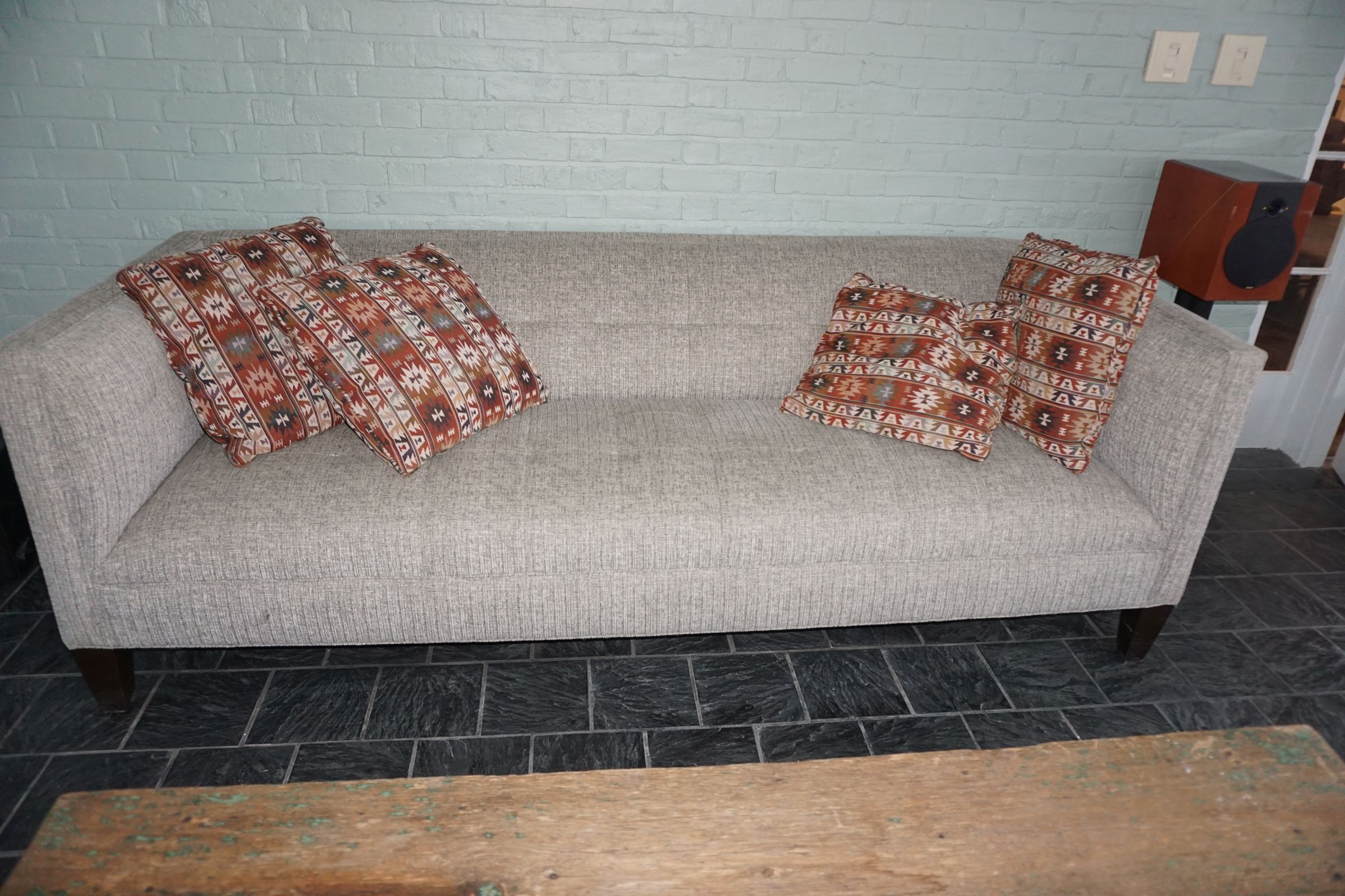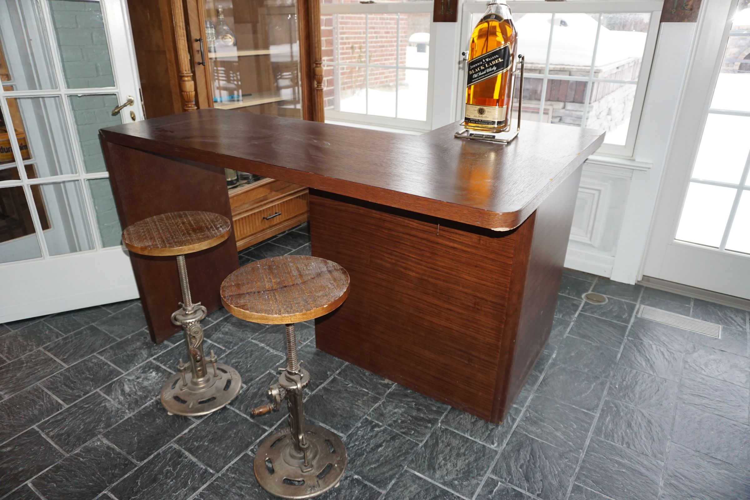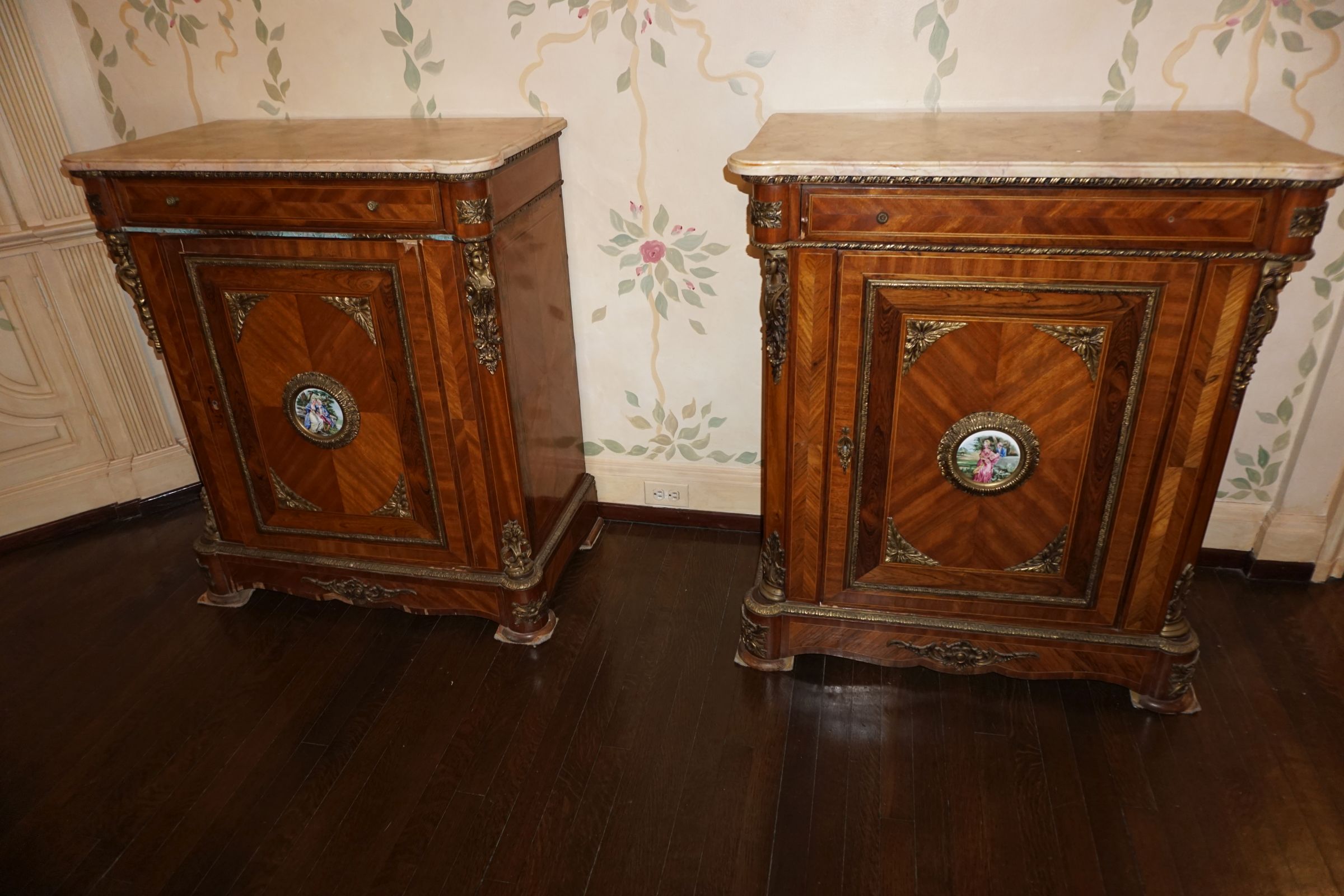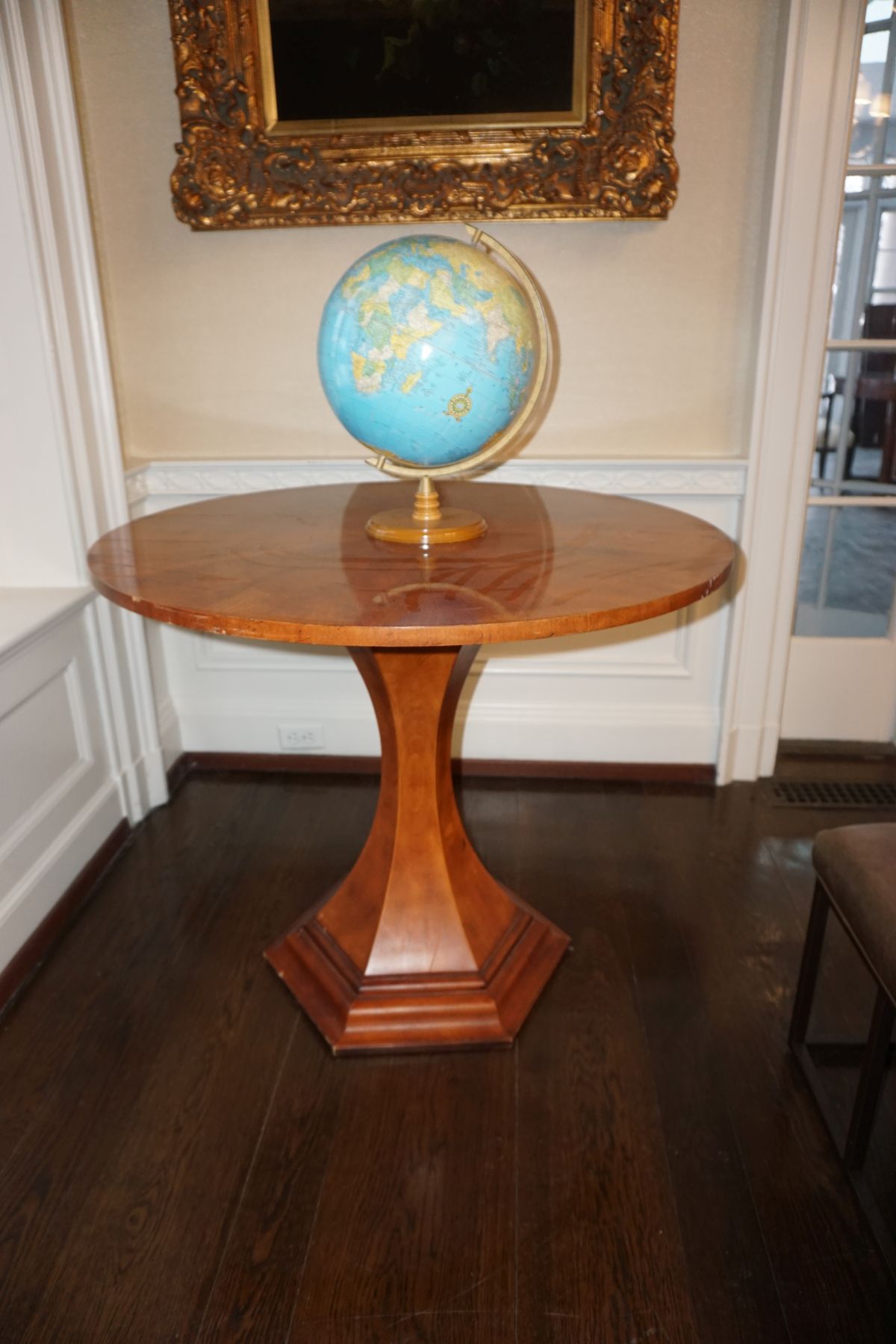 Buffalo Historical High Back Ornately carved Mahogany Settle Bench from The Statler Hilton Hotel, Milo Boughman for Thayer Coggins Walnut Chevron Style with Stainless Steel Base, Set of 9 Antique 19th century carved oak & leather dining room chairs with carved North Wind Face (2 arm chairs & 7 side chairs), pair of Napolean III French Marble Top cabinets with brass ormolu, 10’ x 14’ Bokara Oriental rug, Pine Farmhouse Trestle dining table, set of 8 leather seated chairs, carved Chinese oriental rug, kneehole desk, pair of brass & chrome 2 door cabinets, pair of Asian wall hangings, area rugs, Fox Hunt Oil on Canvas painting by Domingo, Baker Furniture Empire banded mahogany drum table, Louis Phillipe style walnut & leather fainting couch, Mitchel Gold & Bob Williams leather & metal large ottoman, pair of matching tweed style contemporary sofas, Baker Furniture Round pedestal console table, tapestry wall hanging, Large oil on canvas fruit still life in ornate frame, oil on canvas painting of village street scene, Samsung x large TV, Restoration Hardware Mercantile Collection chest/cabinet, pair of reclaimed wood side tables, Baker Furniture bi level coffee table, leather sofa, pair of ornate French provincial lamps, leather recliner, Barbara Barry Collection for Baker Furniture dining table with two leaves & 4 chairs, Set of 4 Butler Everson wood & metal bar stools, Antique French Walnut Armoire, Pair of Vintage Cast Aluminum Barcelona Chairs ( Miles Van Der Rohe), Brutalist chairs & tables, King size tufted upholstered bed, cedar chest, dressers, pair of Queen Size Bassett beds & matching night stands, bar stools, leather sectional, kitchenware, quality patio furniture including two sets of table & chairs, wicker sofa & pair of chairs, metal sofas & table, chaise lounges & more!!