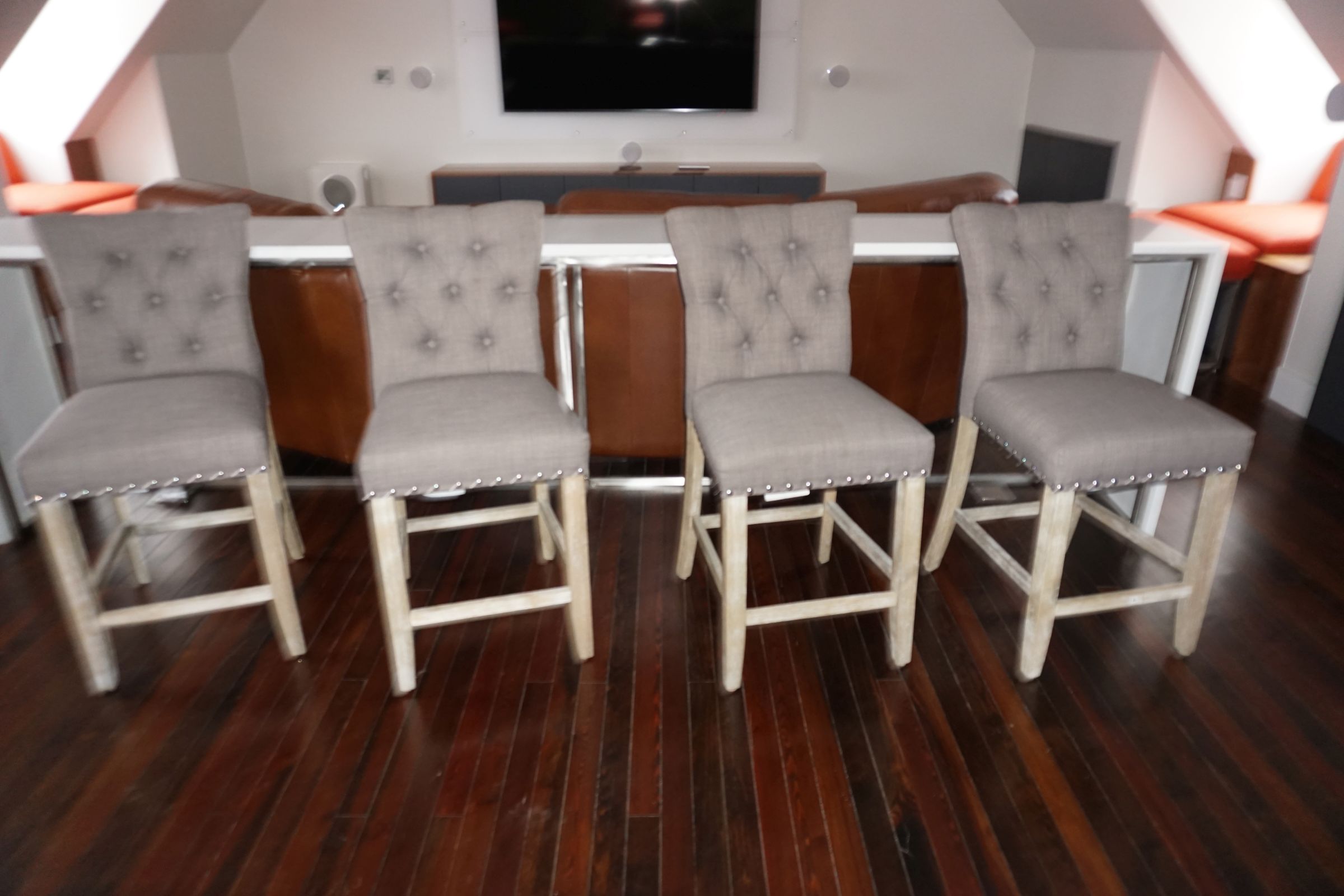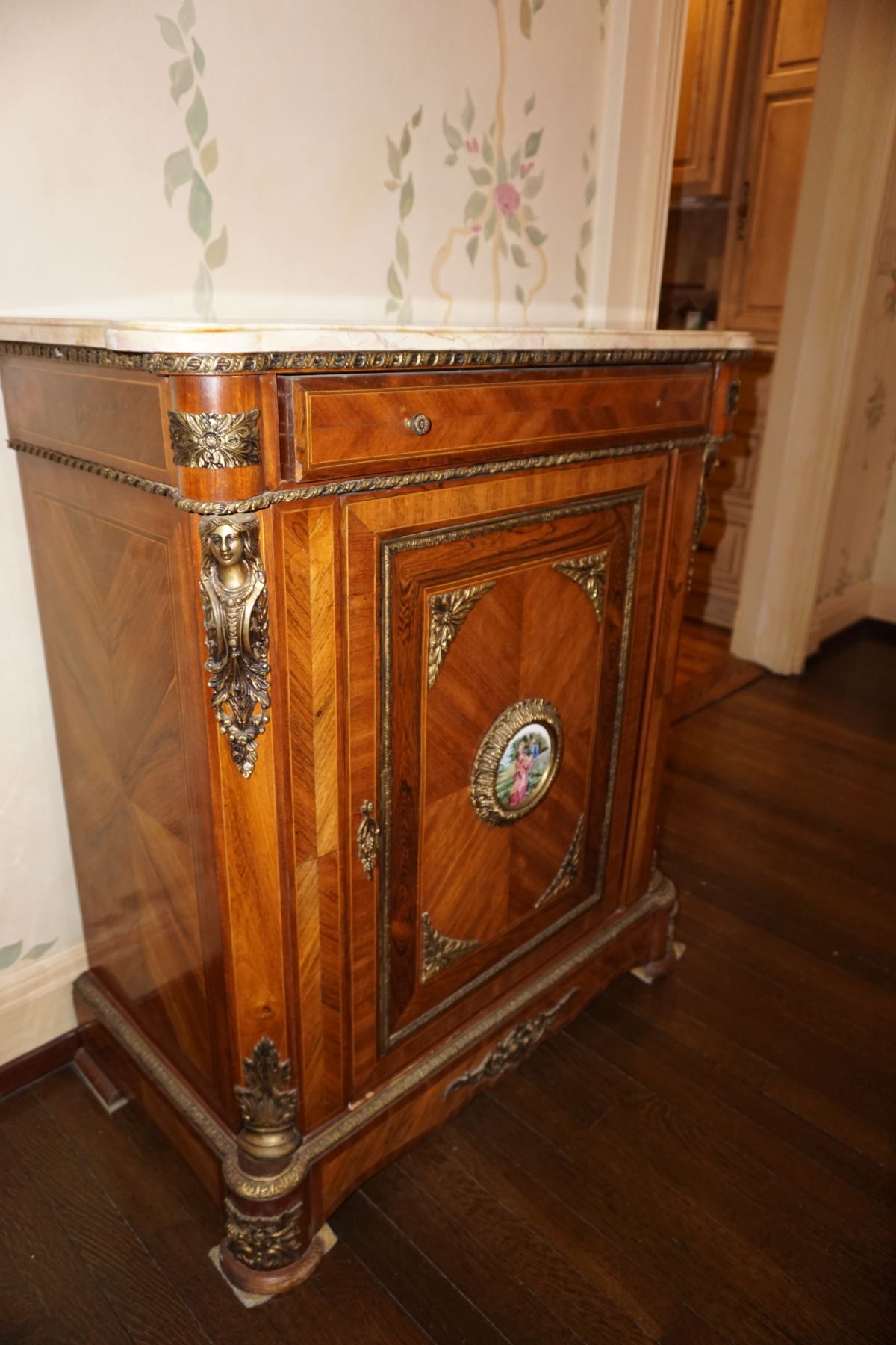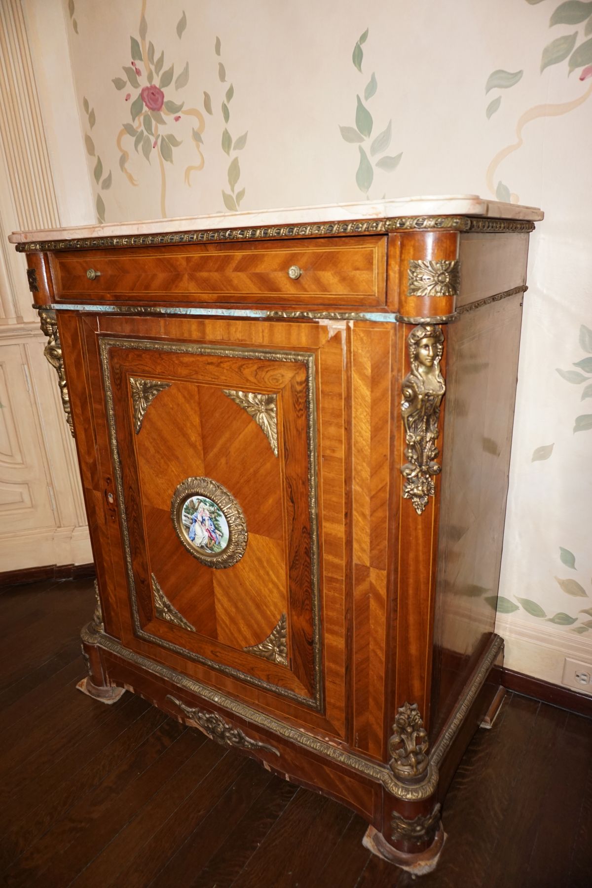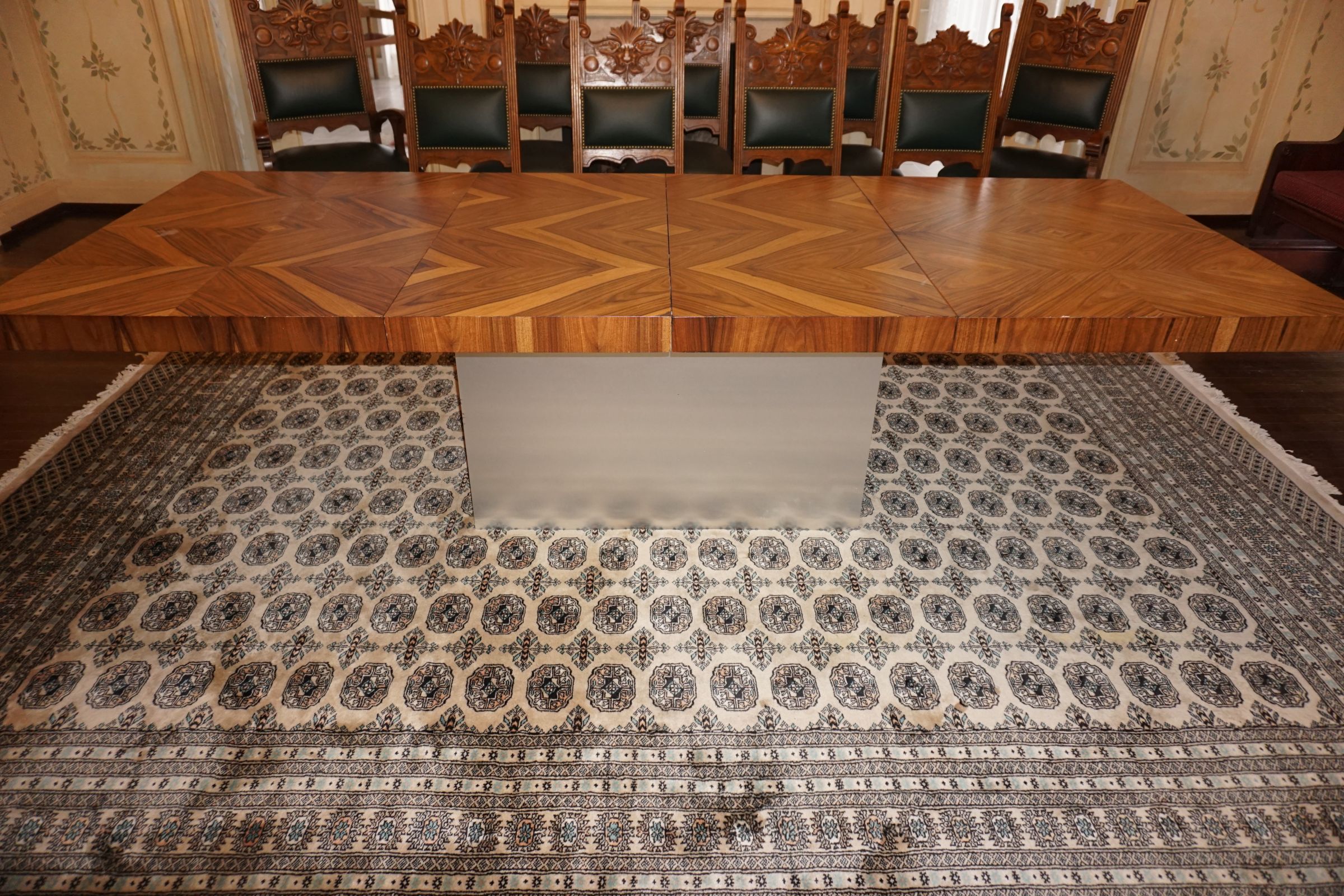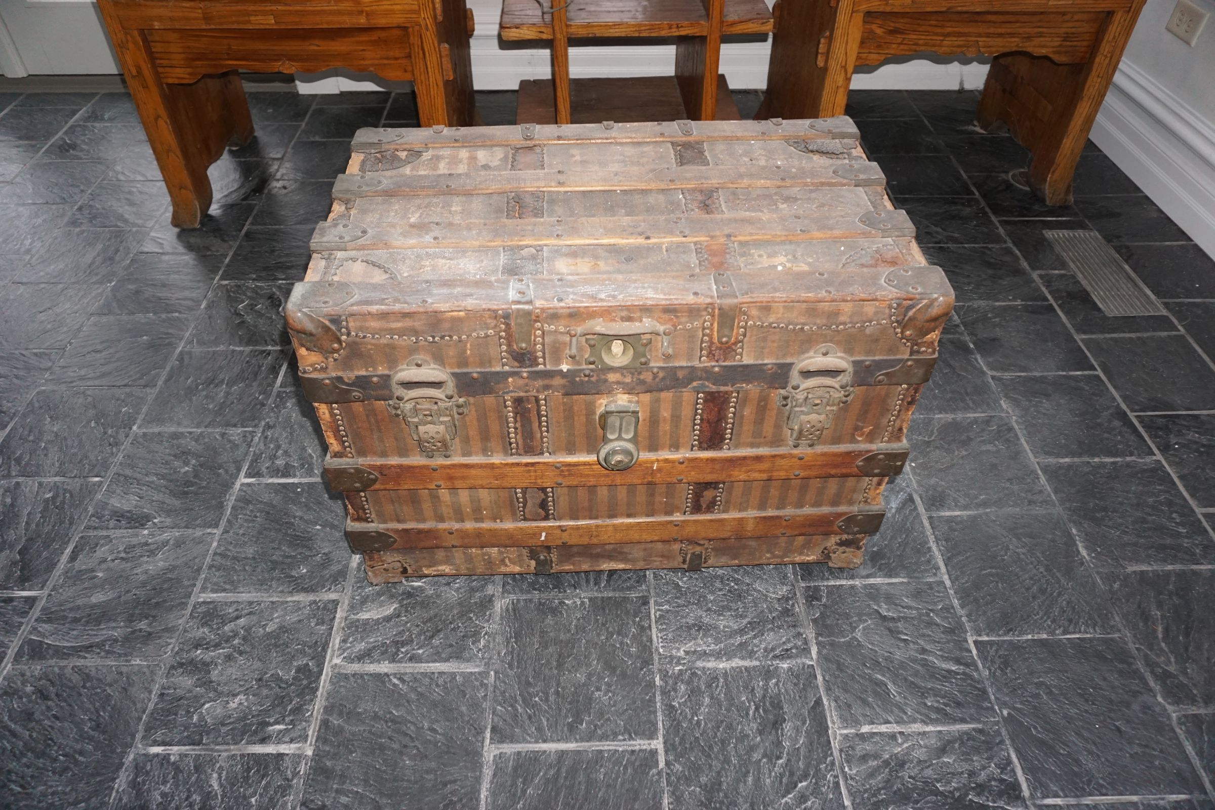 Buffalo Historical High Back Ornately carved Mahogany Settle Bench from The Statler Hilton Hotel, Milo Boughman for Thayer Coggins Walnut Chevron Style with Stainless Steel Base, Set of 9 Antique 19th century carved oak & leather dining room chairs with carved North Wind Face (2 arm chairs & 7 side chairs), pair of Napolean III French Marble Top cabinets with brass ormolu, 10’ x 14’ Bokara Oriental rug, Pine Farmhouse Trestle dining table, set of 8 leather seated chairs, carved Chinese oriental rug, kneehole desk, pair of brass & chrome 2 door cabinets, pair of Asian wall hangings, area rugs, Fox Hunt Oil on Canvas painting by Domingo, Baker Furniture Empire banded mahogany drum table, Louis Phillipe style walnut & leather fainting couch, Mitchel Gold & Bob Williams leather & metal large ottoman, pair of matching tweed style contemporary sofas, Baker Furniture Round pedestal console table, tapestry wall hanging, Large oil on canvas fruit still life in ornate frame, oil on canvas painting of village street scene, Samsung x large TV, Restoration Hardware Mercantile Collection chest/cabinet, pair of reclaimed wood side tables, Baker Furniture bi level coffee table, leather sofa, pair of ornate French provincial lamps, leather recliner, Barbara Barry Collection for Baker Furniture dining table with two leaves & 4 chairs, Set of 4 Butler Everson wood & metal bar stools, Antique French Walnut Armoire, Pair of Vintage Cast Aluminum Barcelona Chairs ( Miles Van Der Rohe), Brutalist chairs & tables, King size tufted upholstered bed, cedar chest, dressers, pair of Queen Size Bassett beds & matching night stands, bar stools, leather sectional, kitchenware, quality patio furniture including two sets of table & chairs, wicker sofa & pair of chairs, metal sofas & table, chaise lounges & more!!